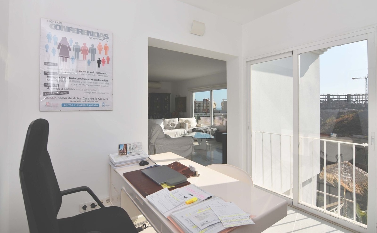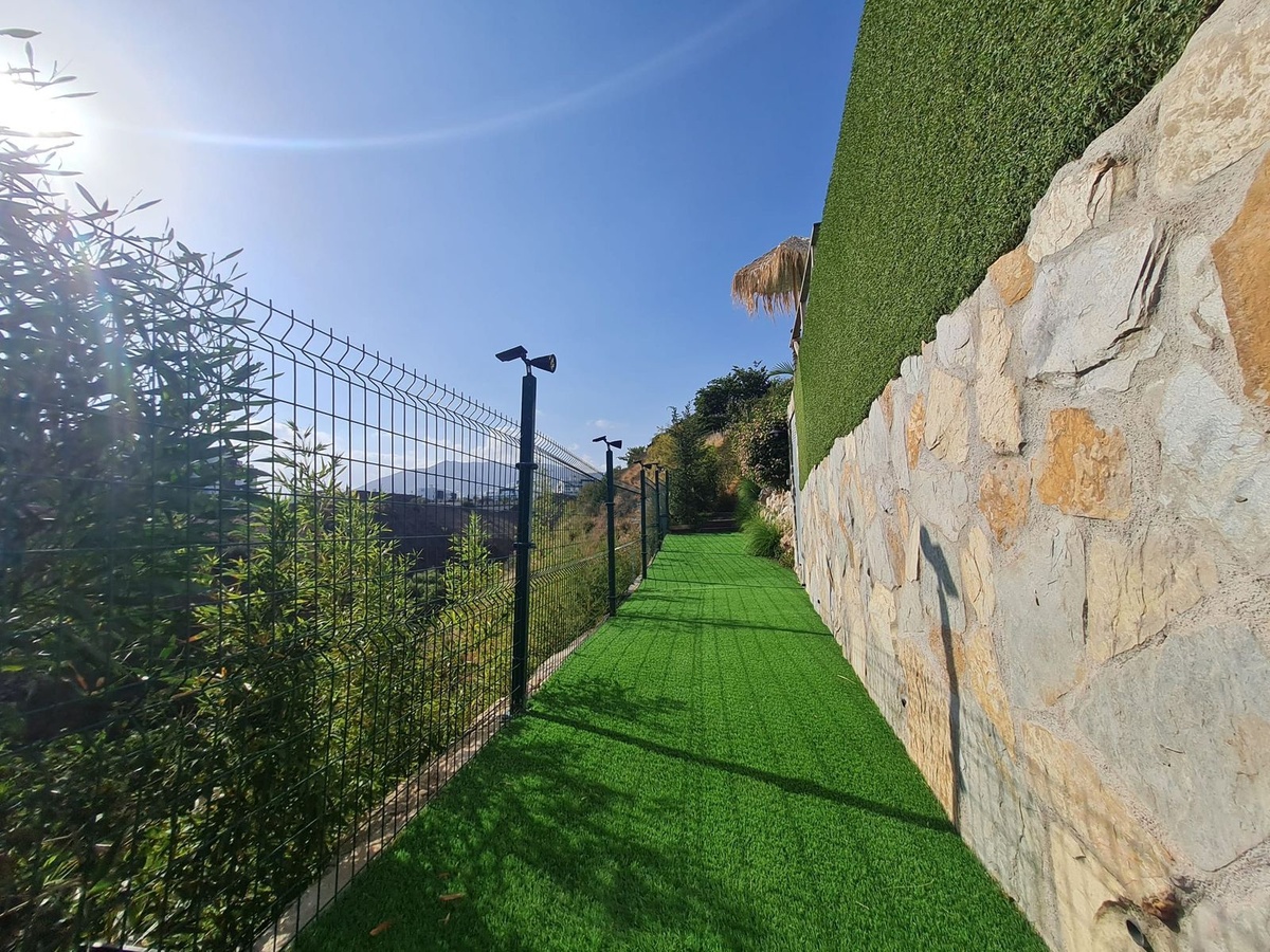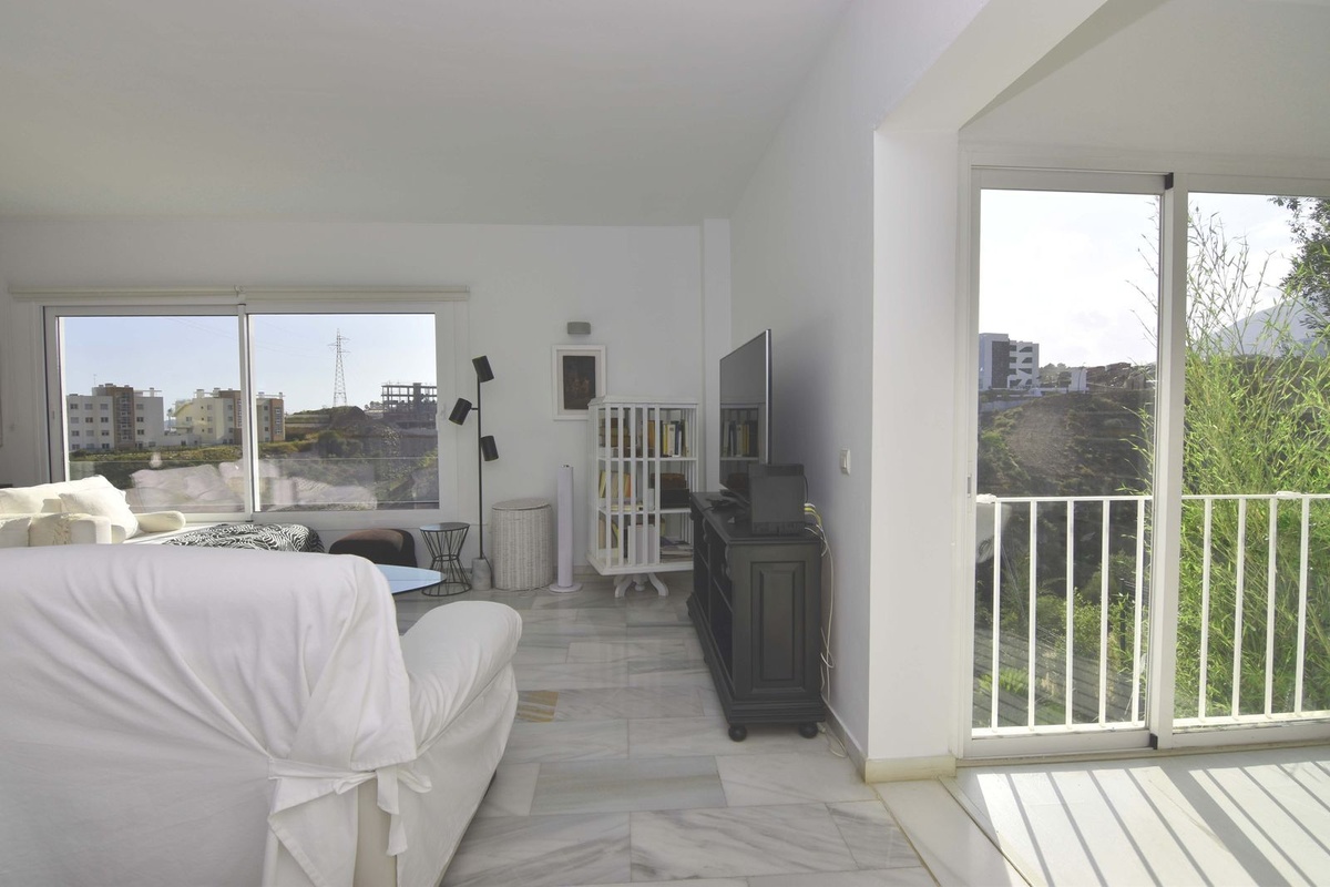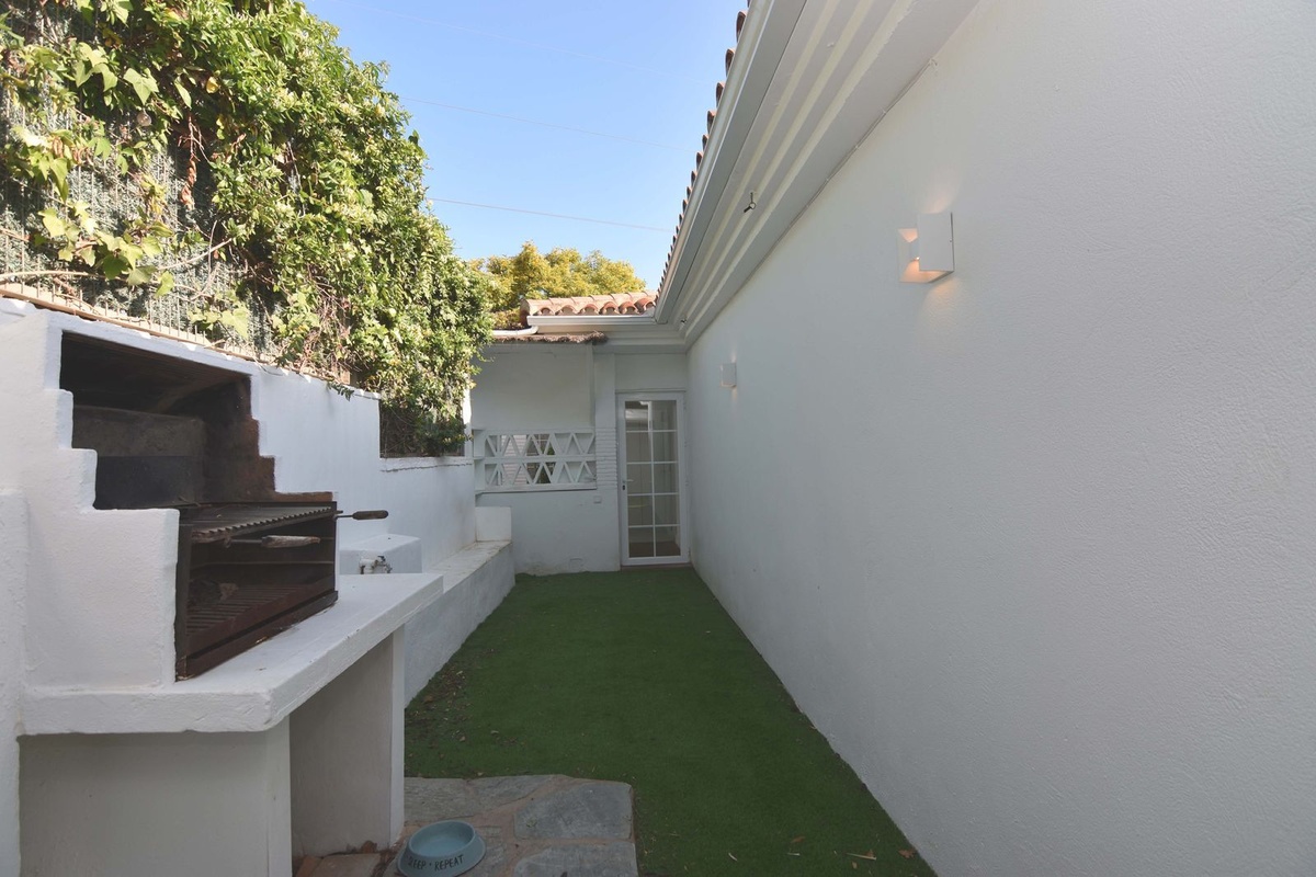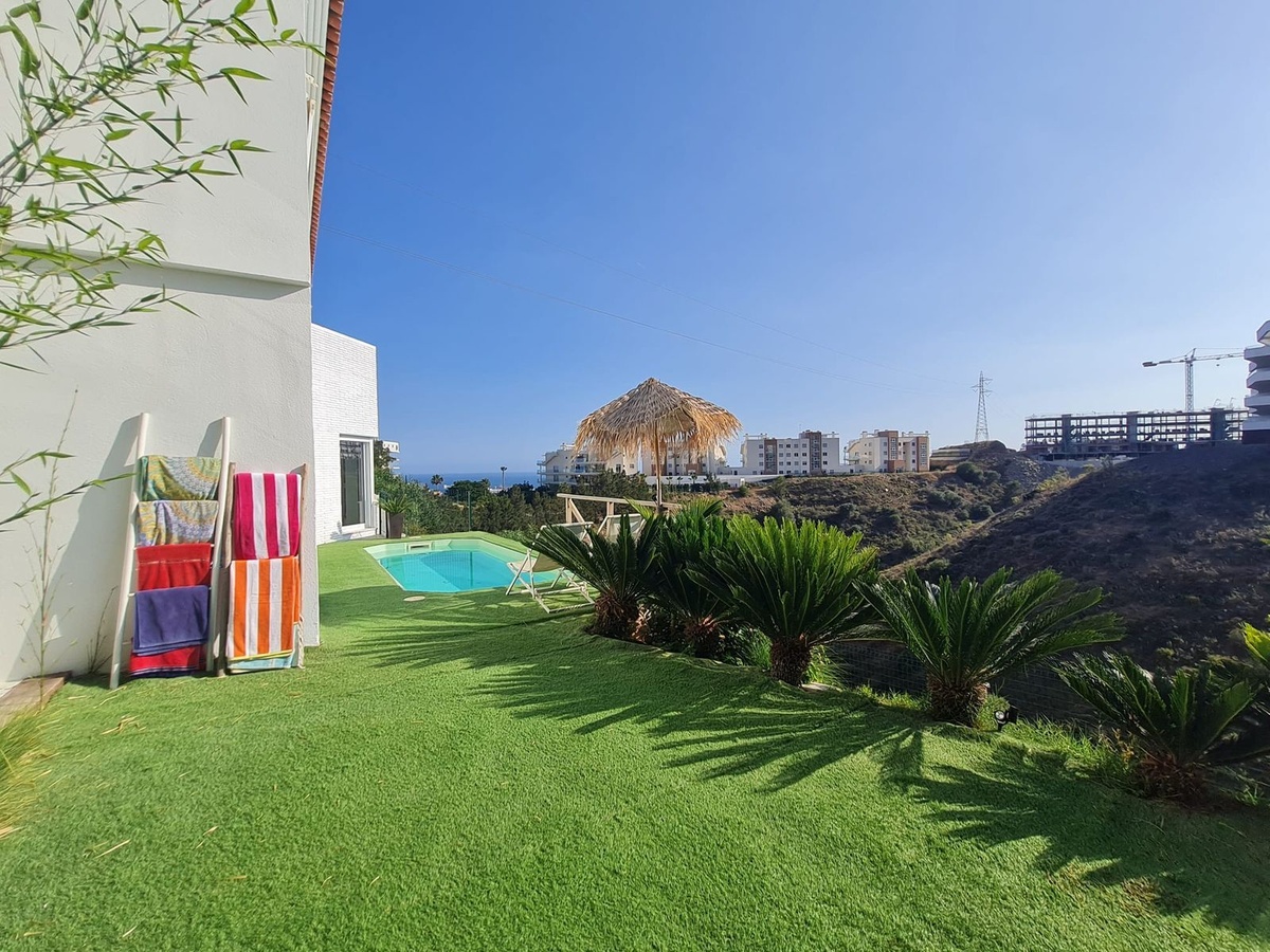 Spacious semi-detached house located in the prestigious Reserva del Higuerón private complex, on the border between Benalmádena and Fuengirola, a step away from all services and Carvajal beach with its beautiful promenade and restaurants. The suburban train station is 100 meters away and there is a free bus service for the residents of the complex. The property has several renovations done: the kitchen, modern and fully equipped with all electrical appliances, has a very nice little terrace with sea views, next to the living room there is an office area with views to the west and plenty of natural light as well as a guest apartment in the basement of the house and finally a private pool in the garden that enjoys sun all day thanks to its west orientation. We access the house where there is a closed garage as well as an outdoor parking space; Next to the entrance hall we find a very functional wardrobe area and on the other side access to a patio with a barbecue area. The ground floor includes the living room with views of the mountains, lots of natural light, the office, the spacious and bright kitchen with its terrace and a guest toilet. On the lower floor we have 3 bedrooms and 2 bathrooms, one of them en-suite inside the large master bedroom, all bedrooms have independent air conditioning, fitted wardrobes and direct access to the garden where there is a private pool with an outdoor shower. From there there is access to a guest suite, recently built into the rock and which has a large main room with bathroom and a back room where a kitchen could easily be installed. The suite has a private terrace and offers complete privacy from the rest of the house. From the garden there is a staircase that communicates with the entrance of the house. This house is ready to move into, located in a very exclusive residential area that has its own private security and where there is a 5-star Hilton Hotel, Cafeteria, Restaurants, supermarket, pharmacy, SPA, gym, hairdresser, 2 swimming pools, tennis courts tennis and paddle etc... Contact us for more information.