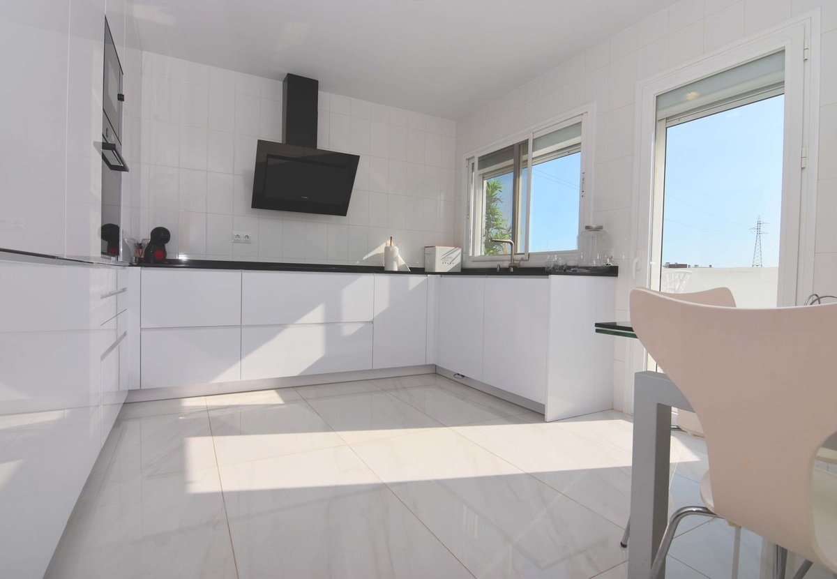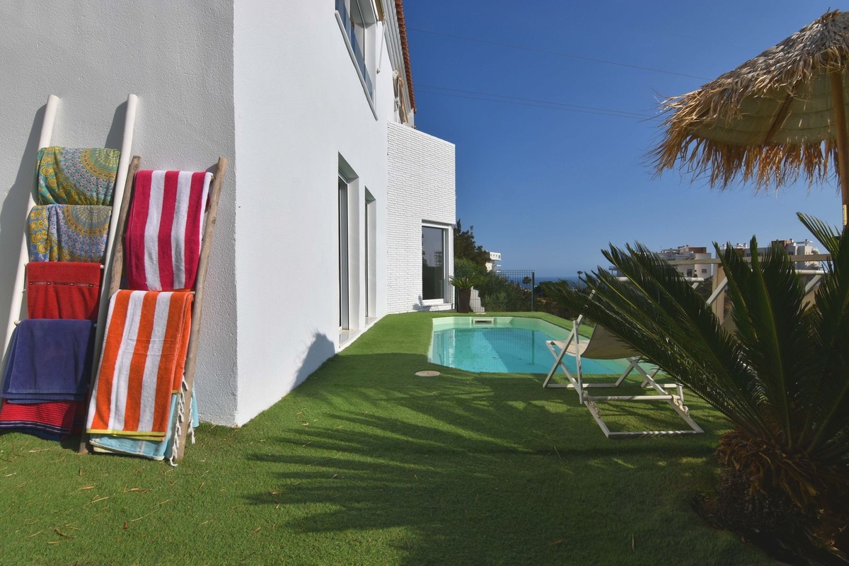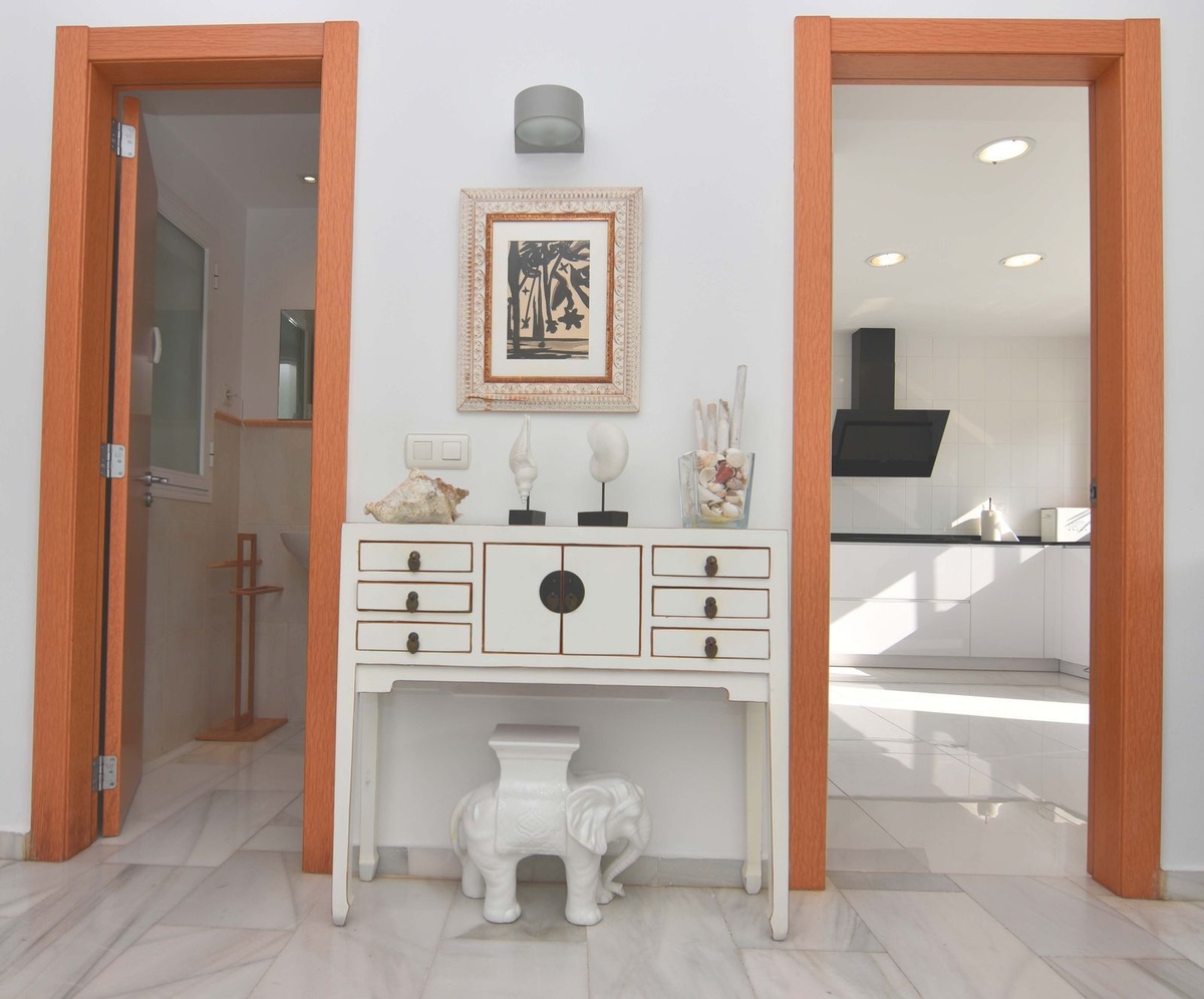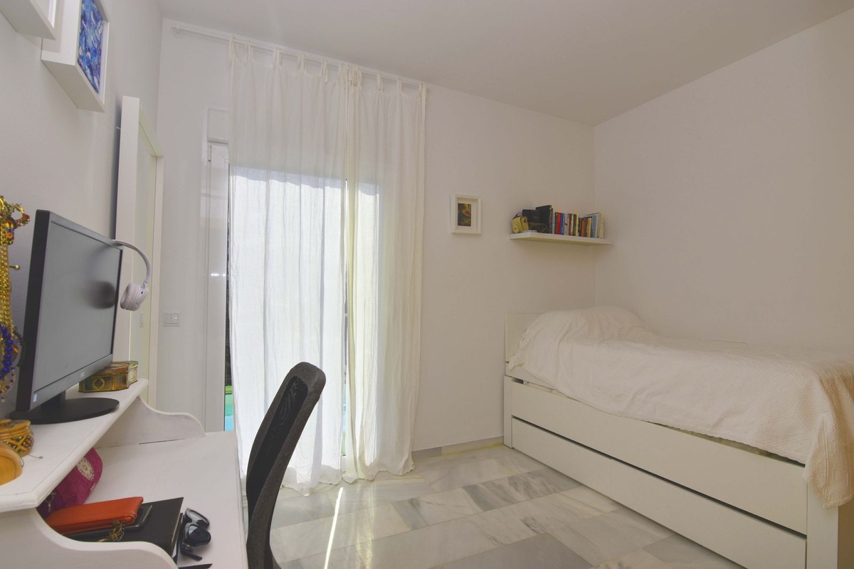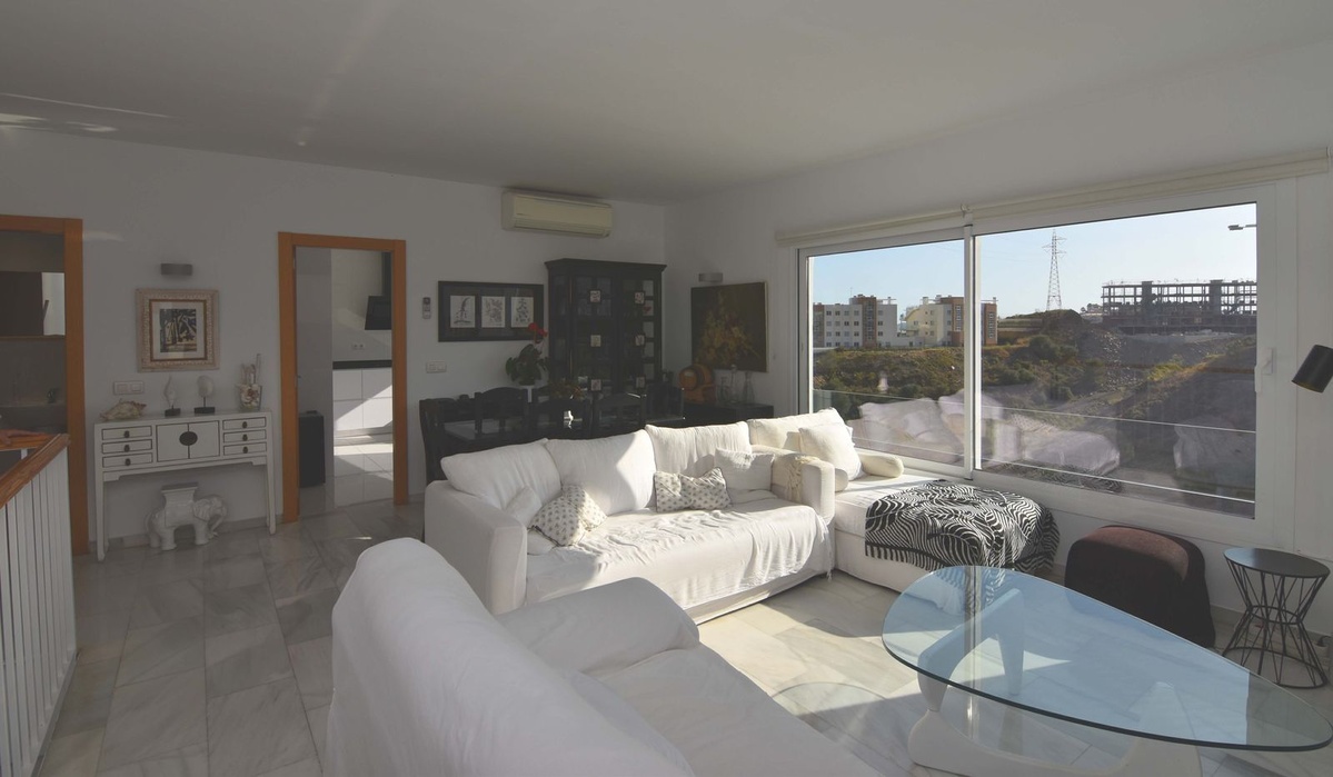Spacious semi-detached house located in the prestigious Reserva del Higuerón private complex, on the border between Benalmádena and Fuengirola, a step away from all services and Carvajal beach with its beautiful promenade and restaurants. The suburban train station is 100 meters away and there is a free bus service for the residents of the complex. The property has several renovations done: the kitchen, modern and fully equipped with all electrical appliances, has a very nice little terrace with sea views, next to the living room there is an office area with views to the west and plenty of natural light as well as a guest apartment in the basement of the house and finally a private pool in the garden that enjoys sun all day thanks to its west orientation. We access the house where there is a closed garage as well as an outdoor parking space; Next to the entrance hall we find a very functional wardrobe area and on the other side access to a patio with a barbecue area. The ground floor includes the living room with views of the mountains, lots of natural light, the office, the spacious and bright kitchen with its terrace and a guest toilet. On the lower floor we have 3 bedrooms and 2 bathrooms, one of them en-suite inside the large master bedroom, all bedrooms have independent air conditioning, fitted wardrobes and direct access to the garden where there is a private pool with an outdoor shower. From there there is access to a guest suite, recently built into the rock and which has a large main room with bathroom and a back room where a kitchen could easily be installed. The suite has a private terrace and offers complete privacy from the rest of the house. From the garden there is a staircase that communicates with the entrance of the house. This house is ready to move into, located in a very exclusive residential area that has its own private security and where there is a 5-star Hilton Hotel, Cafeteria, Restaurants, supermarket, pharmacy, SPA, gym, hairdresser, 2 swimming pools, tennis courts tennis and paddle etc... Contact us for more information.