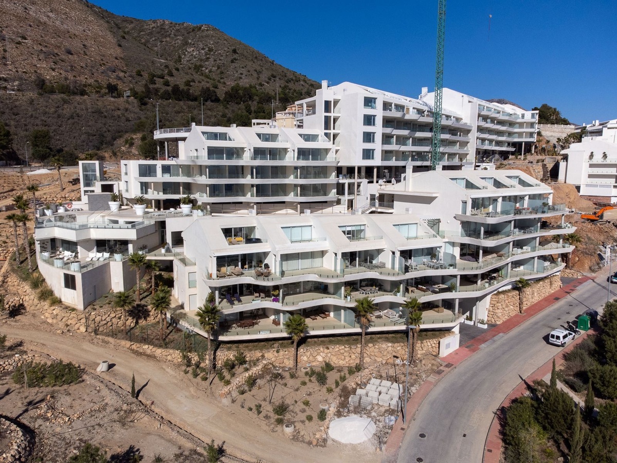 This duplex penthouse was build in 2020 and offers an bright open fully fitted kitchen in combination with the living and dining room, the living area is fitted with large windows leading out to the lower terrace from where you have an unbelievable view to the Mediterranean sea and the coast. 2 good sized bedrooms with wardrobes. Bathroom with a shower.