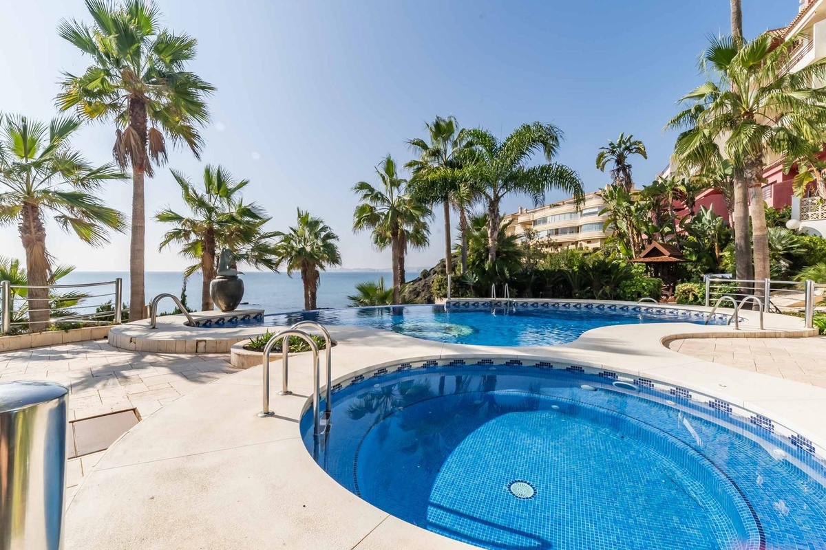 Set on the front line of the sea, this elegant apartment boasts 192 m² of exquisite interior space complemented by a 38 m² sun-drenched terrace, offering uninterrupted views of the shimmering Mediterranean and the picturesque Fuengirola Bay.