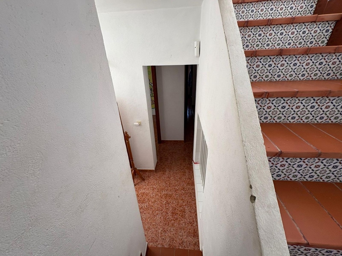 The property is distributed over two floors plus a spacious rooftop terrace. On the ground floor, you'll find one bedroom, a small bathroom, a cozy living room, and a functional kitchen with access to a small patio. The second floor features two bright bedrooms and a full bathroom. The terrace, approximately 45 m², includes a laundry room and boasts beautiful sea views, making it the perfect space to relax, enjoy outdoor dining, or create a chill-out area.