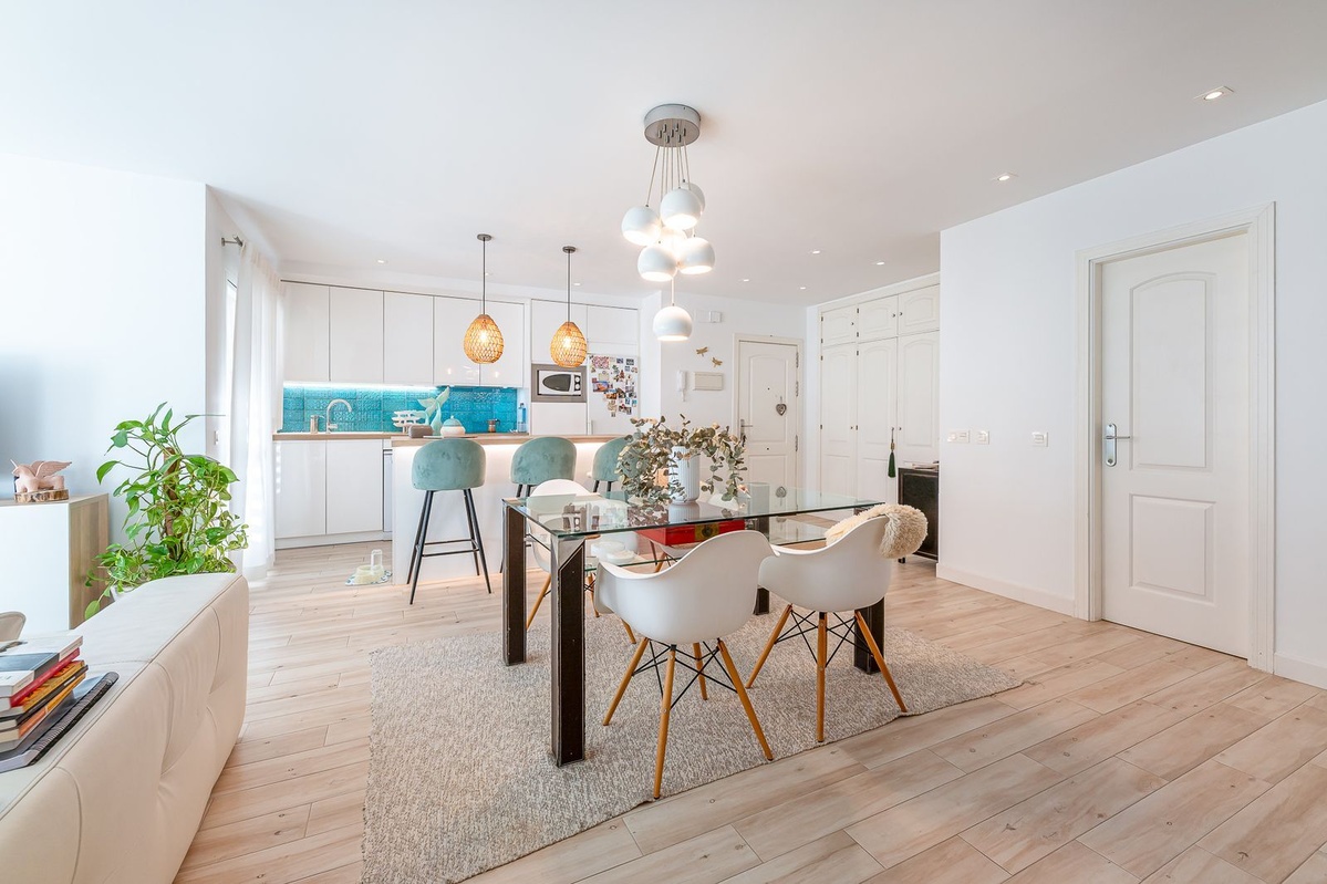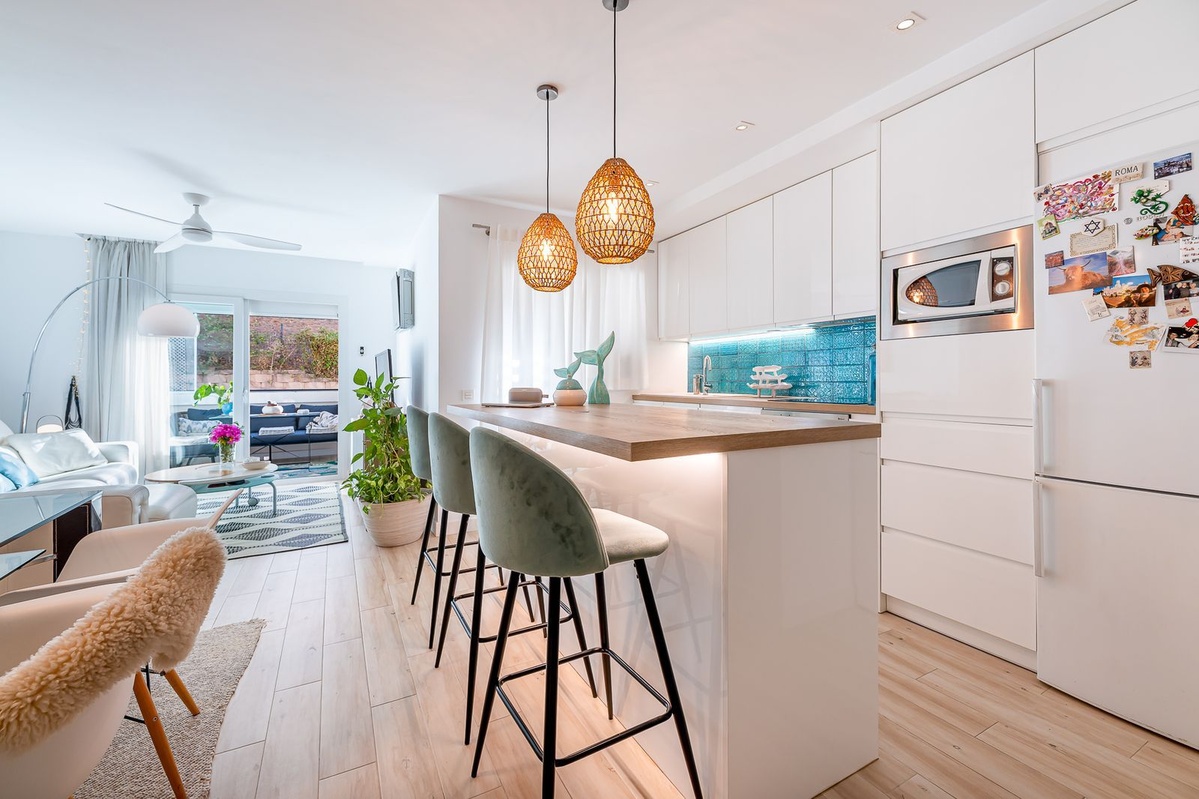 In the heart of Santangelo Sur, one of the most sought-after residential areas in Benalmádena for its tranquility and excellent connections, stands this renovated apartment that combines space, modern style, and an unbeatable location. The property offers a practical and comfortable layout, designed for everyday living: Three bright bedrooms, ideal for a family or to set up an office and guest area. Two full bathrooms, one with a bathtub and the other with a shower, both with natural ventilation. Independent modern-style kitchen, equipped with functional furniture and storage space. Spacious living-dining room, with large windows that allow abundant natural light throughout the day. Generous storage capacity, with large built-in wardrobes in the bedrooms and common areas, perfect for keeping everything organized. Separate laundry room. Terrace with side sea views, perfect for relaxing or enjoying an outdoor dinner. Large private garage space, with additional room for storage. Oversized storage room (9m²). The apartment is located in a private complex with a communal swimming pool, surrounded by landscaped areas and very few neighbors, ensuring a relaxed and family-friendly atmosphere. A privileged setting Living in Santangelo Sur means enjoying a quiet, elevated residential area, yet perfectly connected: Immediate access to the A-7 motorway, reaching Málaga airport in under 20 minutes or the beach in just a few minutes. Close to Arroyo de la Miel town center, where you’ll find schools, supermarkets, health centers, shops, and a wide range of leisure options. Very near Xanit International Hospital and the Benalmádena Public High-Resolution Hospital. Green areas such as Paloma Park or natural spaces on the mountain slopes, perfect for outdoor enthusiasts. Thanks to its location, the property combines the peace of a residential area with the convenience of having everything you need just minutes away, making it ideal both as a permanent home or a holiday property. With outstanding energy efficiency, this apartment guarantees year-round comfort along with moderate consumption. Community fees: €115/month Property tax (IBI): €720/year Waste collection: €89/year Don’t miss the opportunity: book your visit and fall in love with this home. We make it happen...