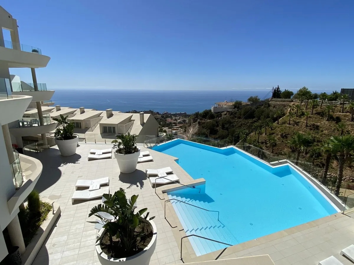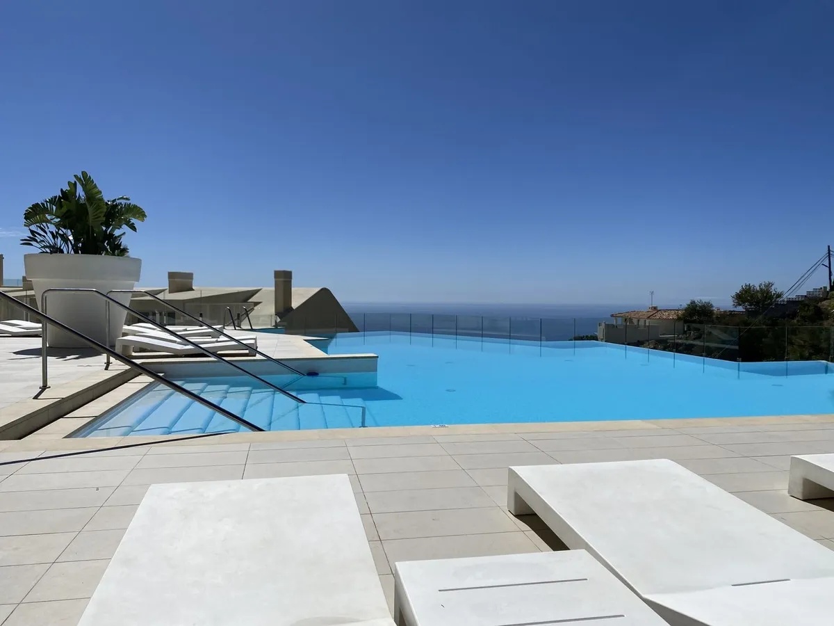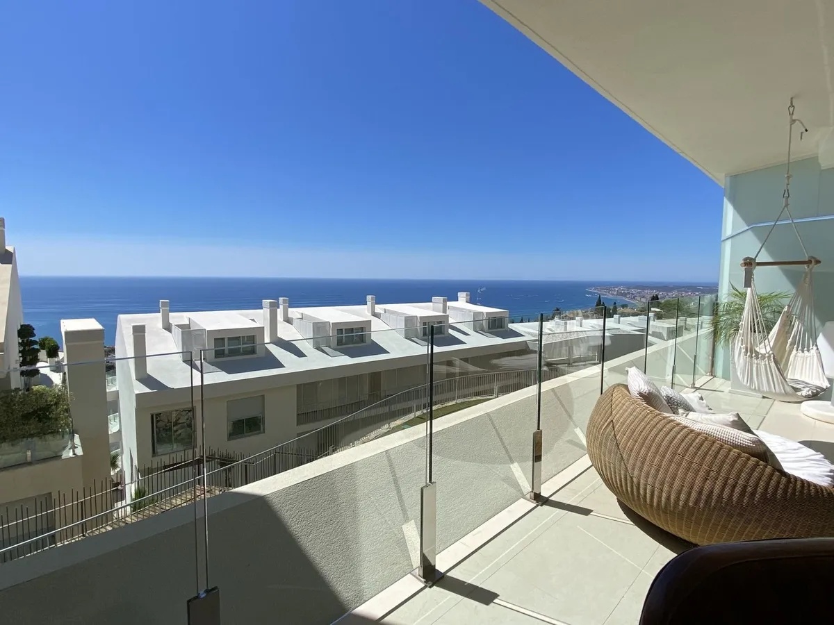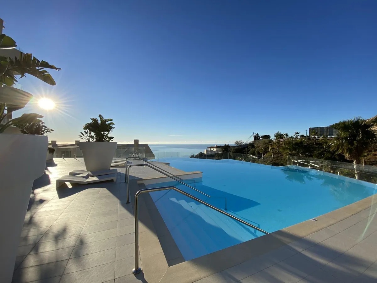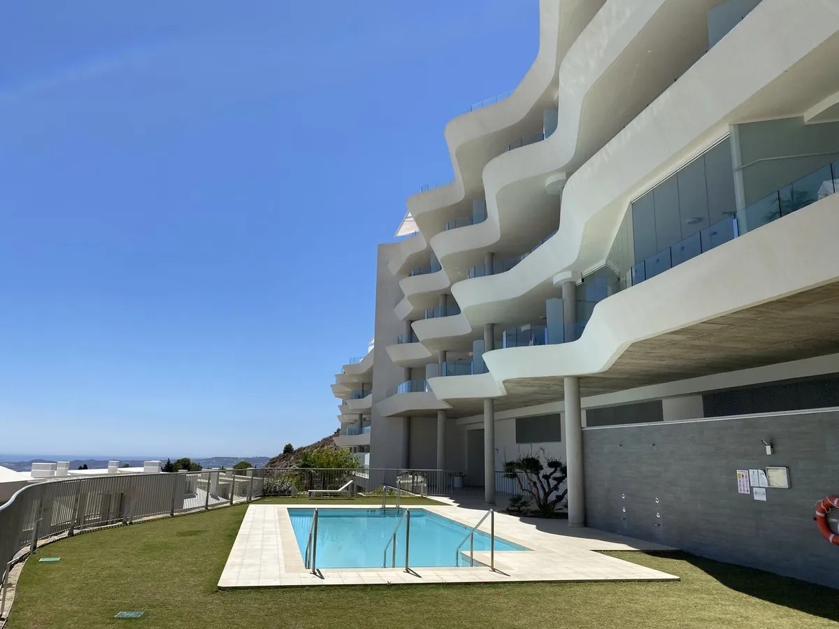 For sale or rent. In Stupa Hills Phase 3, a very comfortable 3 bed 2.5 bath first floor corner apartment with great sea views. Upon entering the apartment and stepping out on to the spacious 33m2 balcony you will straight away experience the unbeatable views of the Mediterranean Sea all the way down to Fuengirola Marina. Open plan living room with Italian design kitchen including Siemens appliances and wine fridge. Floor to ceiling glass sliding doors open to the covered outdoor living area. Aircon hot and cold plus heat pump operated underfloor heating throughout the entire apartment controlled separately per room. The primary bedroom also connects to the covered balcony and has a bathroom ensuite. The two guest bedrooms share a shower room and there is a separate guest toilet. Double private parking in the garage and a big storage room included. Don't miss this rare opportunity to acquire a 3-bedroom apartment in Stupa Hills. Stupa Hills is a new home concept to rediscover the senses in a tranquil and privileged elevated position against the slopes of the hills, but yet within walking distance of the lively authentic Andalusian 'pueblo blanco' Benalmádena-Pueblo. A place where you will have everything at your disposal for your family including international schools and health services. A truly unique location with panoramic views and arguably the best near Benalmádena-Pueblo: a balcony overlooking the Mediterranean Sea and an area of powerful energy next to the Buddhist Stupa of Enlightenment. Benalmádena-Pueblo hosts cosy bars and fine restaurants and very conveniently there is a supermarket on your doorstep as well as Altos del Higuerón shopping centre. In close proximity you will find Puerto Marina de Benalmádena, themeparcs, golfcourses and the beautiful wide sandy beaches of Benalmádena-Costa. The urbanization is centrally located on the Costa del Sol between Málaga and Marbella. Nearby access to the A-7 motorway leads you in only 10 minutes to Málaga Airport. With its avant-garde lines, the design of the Stupa Hills residential complex has been conceived by the renowned architect J. Daniel Rodríguez with his personal goal to achieve a unique development. It is not just a housing complex, it's a lifestyle. Qualities have been studied in detail to offer you a unique experience and the fusion of interior and exterior allows light, sun and breeze to flow naturally. The gated complex with onsite concierge and security guard services is designed for your daily well-being offering vertical gardens, a beautiful spa and wellness centre hosting a Technogym, sauna, steam bath, indoor heated massage therapy pool and rooftop sundeck with infinity pool plus a second outdoor swimming-pool in the communal garden. Stupa Hills is a great place to live permanently with all amenities within walking distance or to spend your family holidays. On top it offers good rental potential thanks to its unique location and the modern sport- and wellness facilities. Supermarket literally on your doorstep plus the pharmacy, laundry service, flex offices, coffee bar, wine bar, Indian, Italian and Spanish restaurants of Altos del Higuerón just around the corner. Come and see it with your own eyes! Viewing inquiries with minimum 1 day notice please. Alternatively we offer 1 year rental contracts with a monthly rental fee of Euro 2950 unfurnished + Euro 500 advance for service costs (community fee including spa & gym, water, electricity, alarm and internet). Furniture optional. Deposit 2 months.