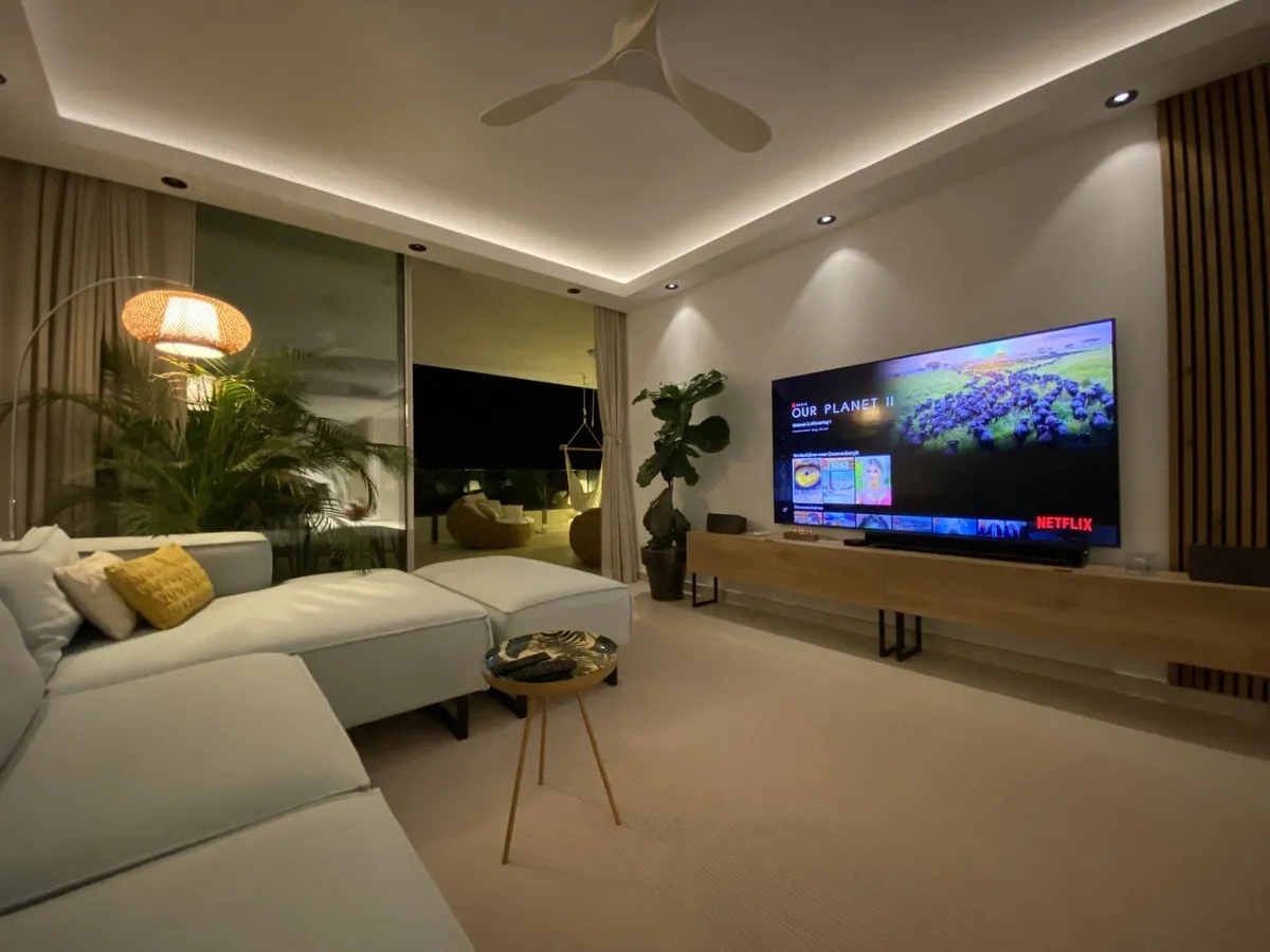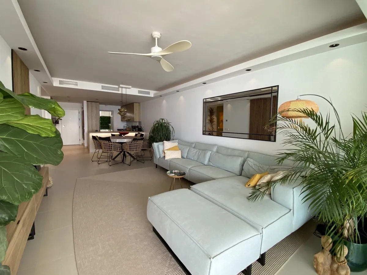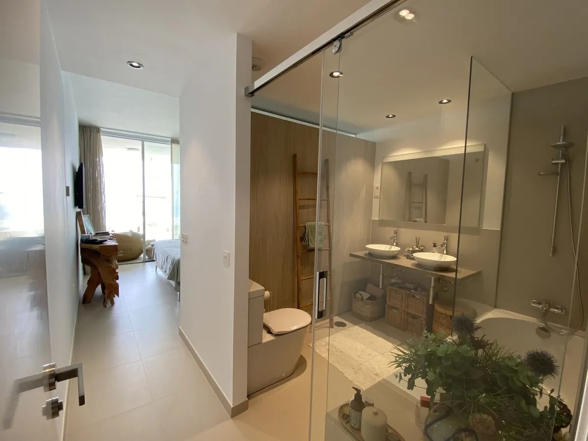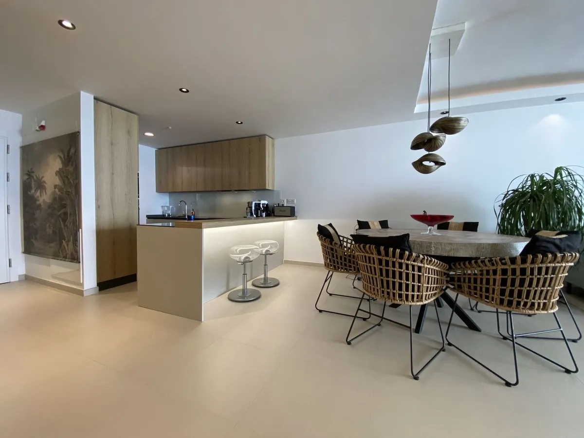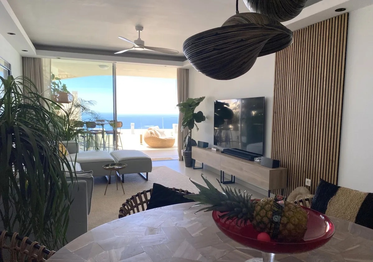 For sale or rent. In Stupa Hills Phase 3, a very comfortable 3 bed 2.5 bath first floor corner apartment with great sea views. Upon entering the apartment and stepping out on to the spacious 33m2 balcony you will straight away experience the unbeatable views of the Mediterranean Sea all the way down to Fuengirola Marina. Open plan living room with Italian design kitchen including Siemens appliances and wine fridge. Floor to ceiling glass sliding doors open to the covered outdoor living area. Aircon hot and cold plus heat pump operated underfloor heating throughout the entire apartment controlled separately per room. The primary bedroom also connects to the covered balcony and has a bathroom ensuite. The two guest bedrooms share a shower room and there is a separate guest toilet. Double private parking in the garage and a big storage room included. Don't miss this rare opportunity to acquire a 3-bedroom apartment in Stupa Hills. Stupa Hills is a new home concept to rediscover the senses in a tranquil and privileged elevated position against the slopes of the hills, but yet within walking distance of the lively authentic Andalusian 'pueblo blanco' Benalmádena-Pueblo. A place where you will have everything at your disposal for your family including international schools and health services. A truly unique location with panoramic views and arguably the best near Benalmádena-Pueblo: a balcony overlooking the Mediterranean Sea and an area of powerful energy next to the Buddhist Stupa of Enlightenment. Benalmádena-Pueblo hosts cosy bars and fine restaurants and very conveniently there is a supermarket on your doorstep as well as Altos del Higuerón shopping centre. In close proximity you will find Puerto Marina de Benalmádena, themeparcs, golfcourses and the beautiful wide sandy beaches of Benalmádena-Costa. The urbanization is centrally located on the Costa del Sol between Málaga and Marbella. Nearby access to the A-7 motorway leads you in only 10 minutes to Málaga Airport. With its avant-garde lines, the design of the Stupa Hills residential complex has been conceived by the renowned architect J. Daniel Rodríguez with his personal goal to achieve a unique development. It is not just a housing complex, it's a lifestyle. Qualities have been studied in detail to offer you a unique experience and the fusion of interior and exterior allows light, sun and breeze to flow naturally. The gated complex with onsite concierge and security guard services is designed for your daily well-being offering vertical gardens, a beautiful spa and wellness centre hosting a Technogym, sauna, steam bath, indoor heated massage therapy pool and rooftop sundeck with infinity pool plus a second outdoor swimming-pool in the communal garden. Stupa Hills is a great place to live permanently with all amenities within walking distance or to spend your family holidays. On top it offers good rental potential thanks to its unique location and the modern sport- and wellness facilities. Supermarket literally on your doorstep plus the pharmacy, laundry service, flex offices, coffee bar, wine bar, Indian, Italian and Spanish restaurants of Altos del Higuerón just around the corner. Come and see it with your own eyes! Viewing inquiries with minimum 1 day notice please. Alternatively we offer 1 year rental contracts with a monthly rental fee of Euro 2950 unfurnished + Euro 500 advance for service costs (community fee including spa & gym, water, electricity, alarm and internet). Furniture optional. Deposit 2 months.