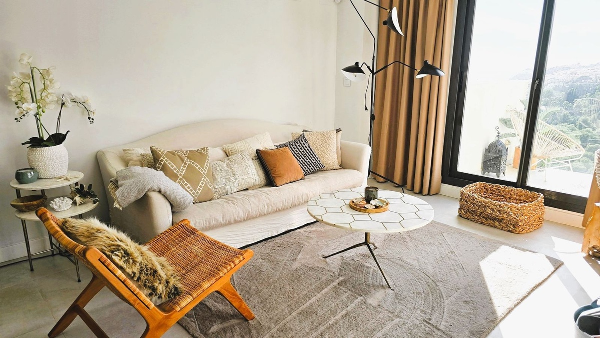 From the moment you enter, the penthouse feels bright, spacious, and welcoming. Its south-to-west orientation allows sunlight to flood the interiors throughout the day, while the open views across the Mediterranean Sea and surrounding mountains create a stunning backdrop from sunrise through sunset.