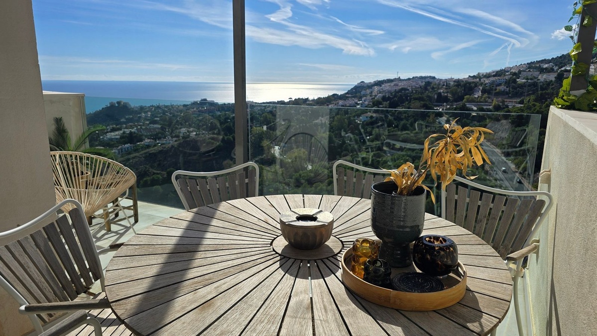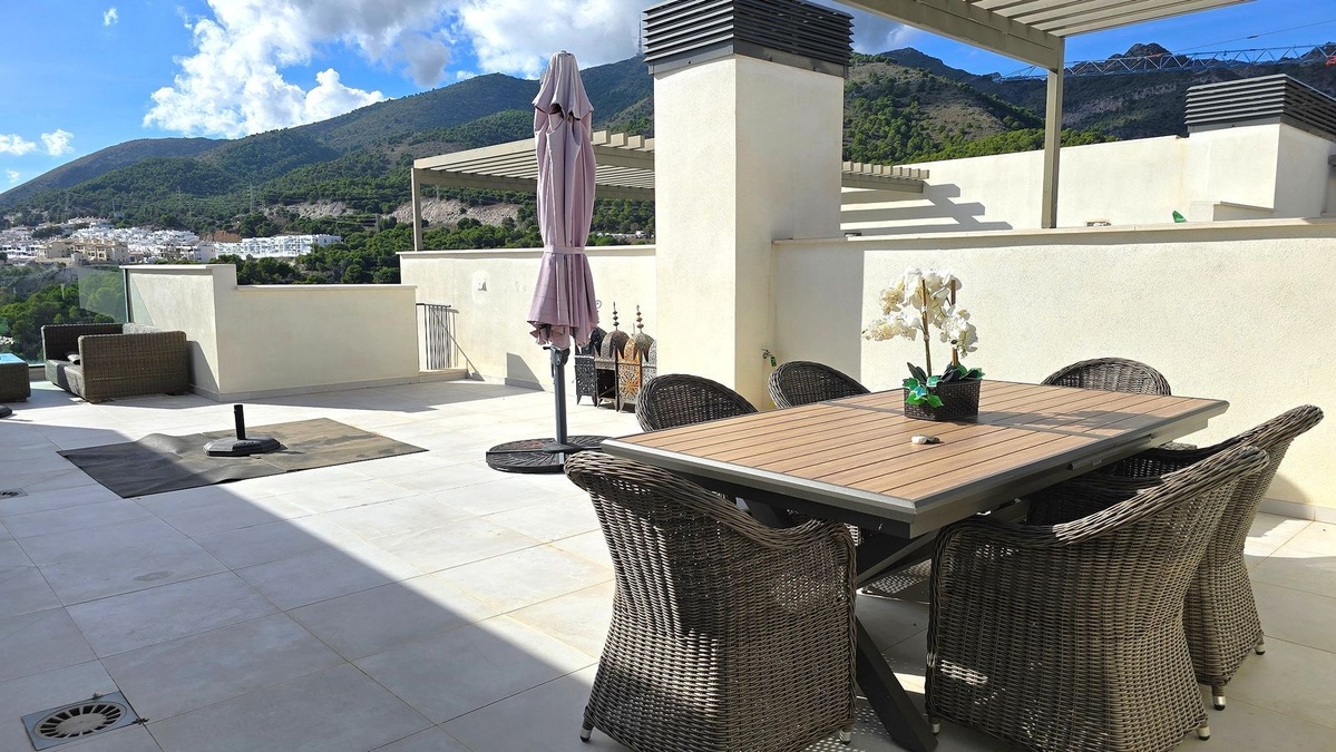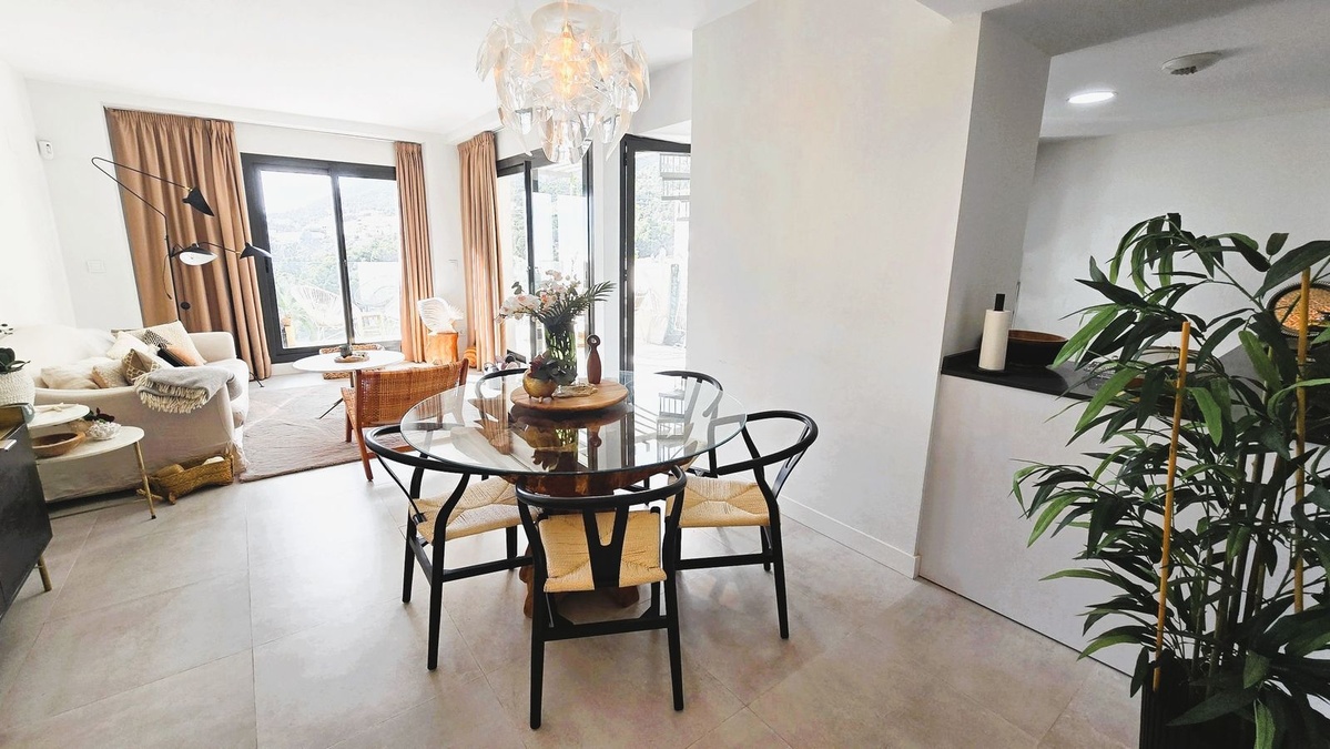 Large sliding glass doors open onto the main terrace, an ideal space for al fresco dining, relaxing, or entertaining while enjoying the panoramic views. The terrace naturally extends the living area outdoors, making it perfect for making the most of the Costa del Sol lifestyle.