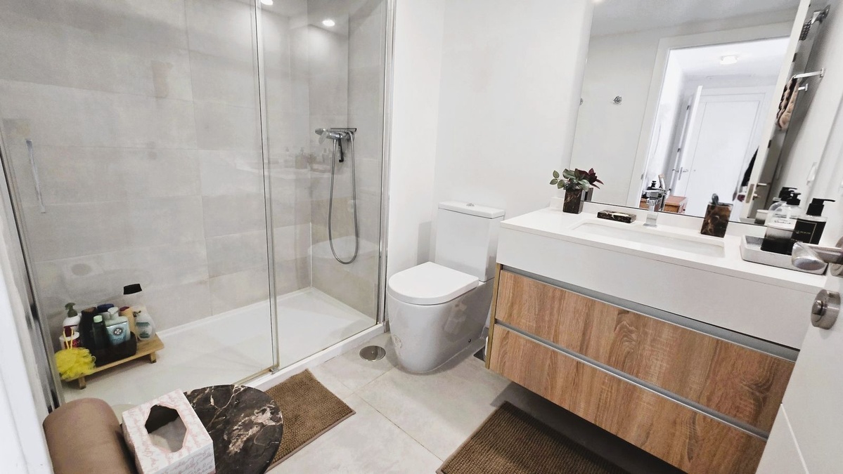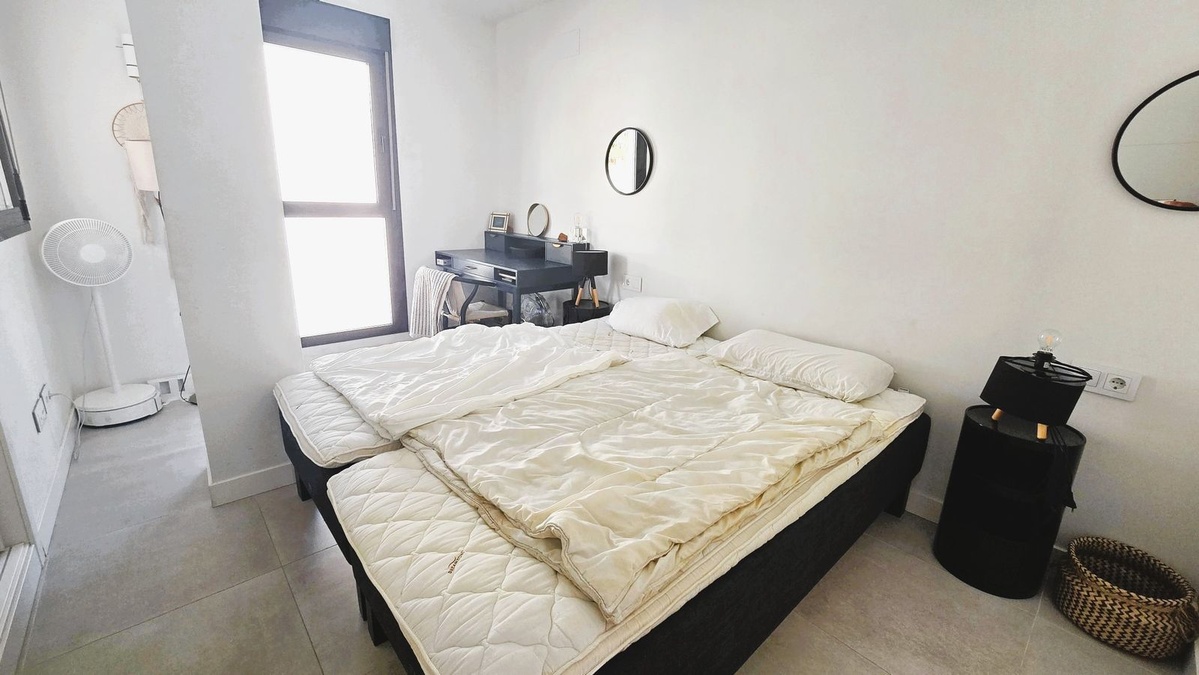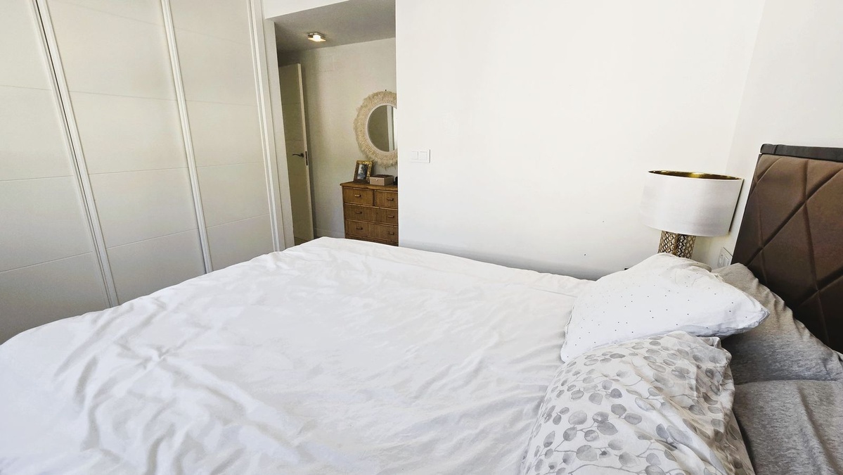 This beautifully presented penthouse for sale in Horizonte, Rocas Blancas, Benalmádena combines modern comfort, abundant natural light, and exceptional outdoor living. Offering 84 m² of interior space, the property features two bedrooms, two bathrooms, and an impressive 71 m² of terrace space, including a private rooftop solarium. Sold fully furnished, it also includes two underground parking spaces and a storage room.