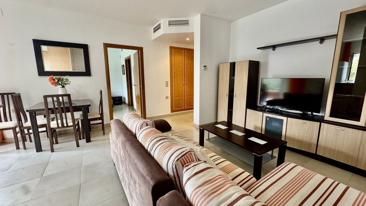 A bright, one-bedroom, one-bathroom apartment is for sale in the Sensara urbanisation in Benalmádena. Sensara is located midway between Arroyo de la Miel and Benalmádena Pueblo. The apartment offers beautiful views of the communal garden, golf course, mountains, and sea. It faces east. The apartment has a surface area of ​​55 m² and a very practical and spacious layout. The kitchen is integrated with the spacious living room, and the bathroom is conveniently connected to the bedroom. The living room has access to a 5 m² covered terrace. The apartment features tiled floors, air conditioning and heating, and ample built-in wardrobes. The windows are double-glazed, and the bathroom has underfloor heating. The sale price also includes a large storage room and a covered parking space on the ground floor of the building. The apartment is sold furnished and is ideal for both personal use and investment. Sensara is also excellent for long-term living. The apartment is ready to move into. The popular Sensara community boasts a stunning tropical garden with walking paths, an outdoor swimming pool with sea views, an outdoor fitness area, a small gym, a library, a cinema, a games room, a restaurant, a reception area, and a spa. Sensara is also ideal for people with reduced mobility, and the garden and beautiful landscaping ensure year-round comfort. Buses stop nearby, and the nearest supermarket is about 500 meters away. Malaga Airport is less than 15 minutes away by car, and the 24-hour Vithas Hospital is just a couple of minutes away. Contact us and inquire about the property: Tel. +34-655689455 (also WhatsApp) A private viewing or a live video tour can be arranged.