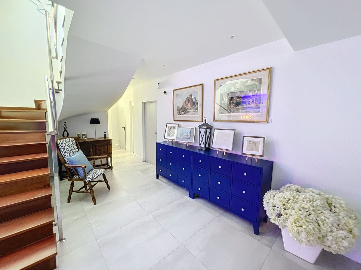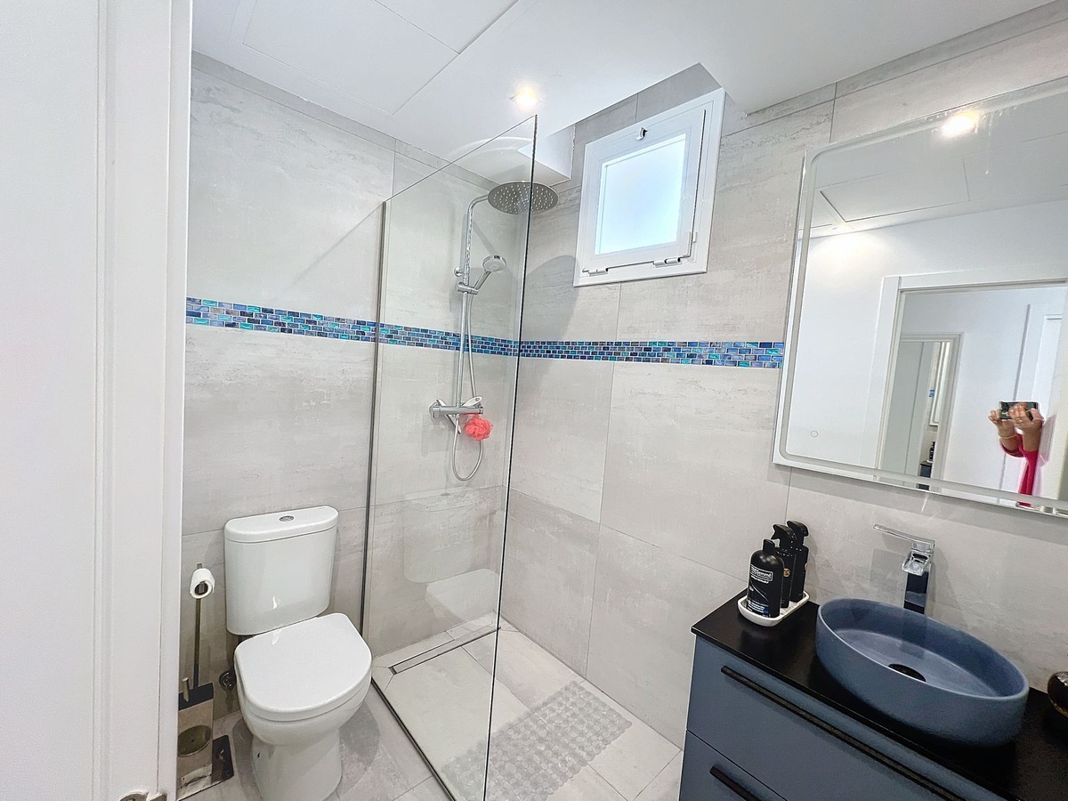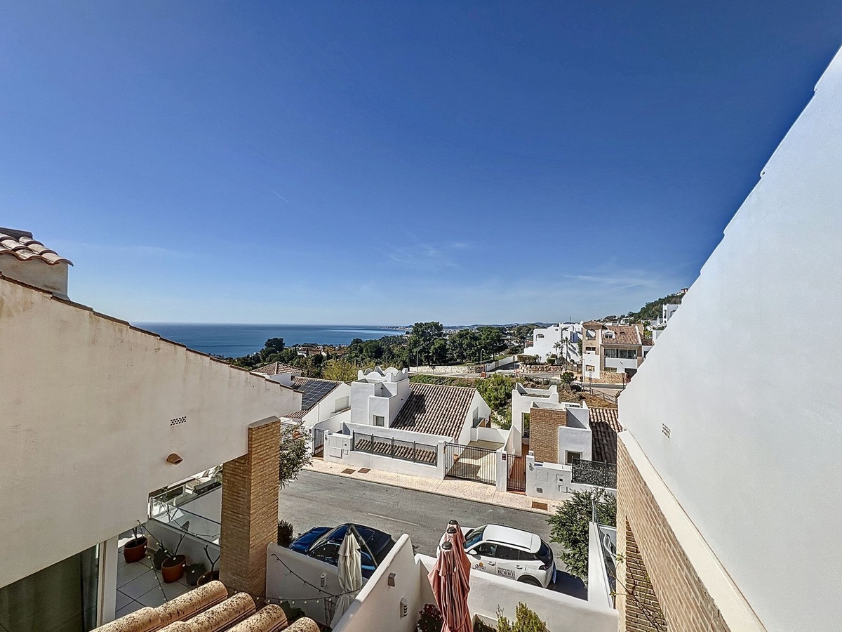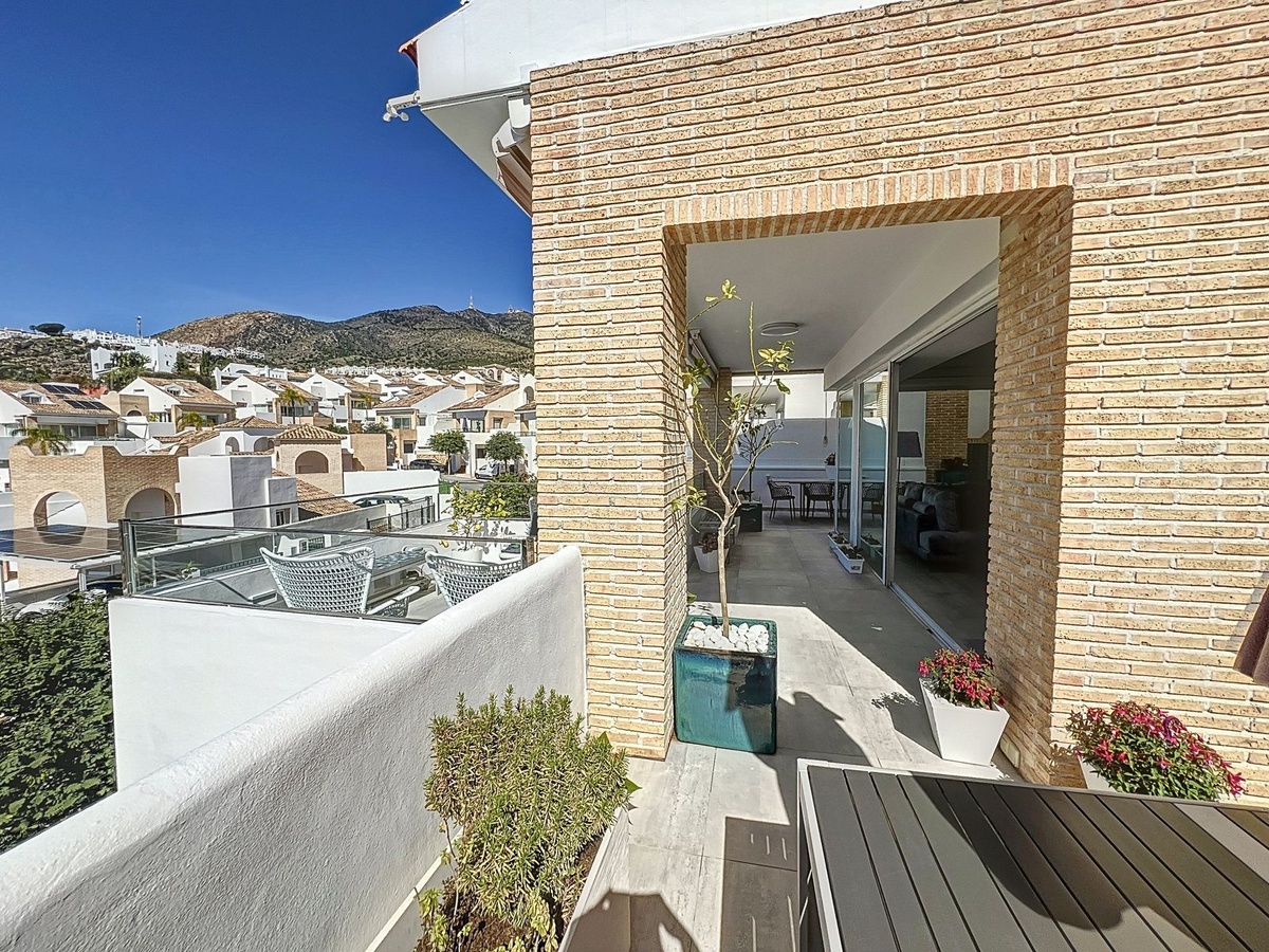 Ubicado en la distinguida comunidad de Big Blue Villas en Benalmádena, este excepcional chalet adosado encarna la esencia del lujo costero. Distribuido en tres niveles, esta residencia ofrece tres amplios dormitorios, tres baños y un aseo adicional para invitados, garantizando un espacio amplio para una vida cómoda. La planta baja te da la bienvenida con una cautivadora sala de estar, que cuenta con un elegante bar adornado con iluminación LED, perfecto para recibir reuniones, y equipado con un televisor proyector. El acceso a la terraza aumenta el atractivo, ampliando las posibilidades de entretenimiento al aire libre. El dormitorio principal, convenientemente ubicado en este nivel, cuenta con un amplio baño en suite y un impresionante vestidor. Además, un dormitorio de invitados con baño en suite complementa este nivel, asegurando privacidad y comodidad. Ascendiendo al primer piso se revela una impresionante sala de estar, conectada de manera fluida a una moderna cocina abierta completamente equipada, un comedor y un área de servicio. La amplia terraza en este nivel ofrece vistas panorámicas al mar, envolviendo la propiedad, y cuenta con un bar integrado, mejorando la experiencia de entretenimiento al aire libre. En la planta superior, otro dormitorio de invitados en suite espera, completo con acceso a su propia terraza privada, proporcionando un retiro sereno con vistas impresionantes. En el exterior, los residentes pueden disfrutar de jardines bellamente ajardinados, disfrutar de la piscina comunitaria o mantener un estilo de vida activo en el gimnasio bien equipado y las áreas sociales. El ático también cuenta con una zona de barbacoa para cenar al aire libre, múltiples terrazas y estacionamiento privado. Con su acceso envidiable a la playa y servicios cercanos, este ático combina perfectamente el lujo y la conveniencia, ofreciendo una experiencia de vida costera incomparable en Big Blue Villas.