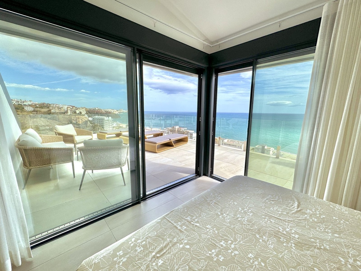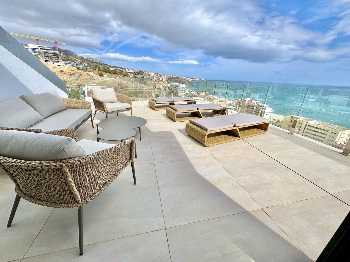 Impresionante ático dúplex de esquina de 3 dormitorios a solo 100 m de la playa, tiendas y restaurantes, con impresionantes vistas de 180º al mar Mediterráneo. Ubicado en la exclusiva comunidad de spa / deportes El Higuerón con Beach Club.
