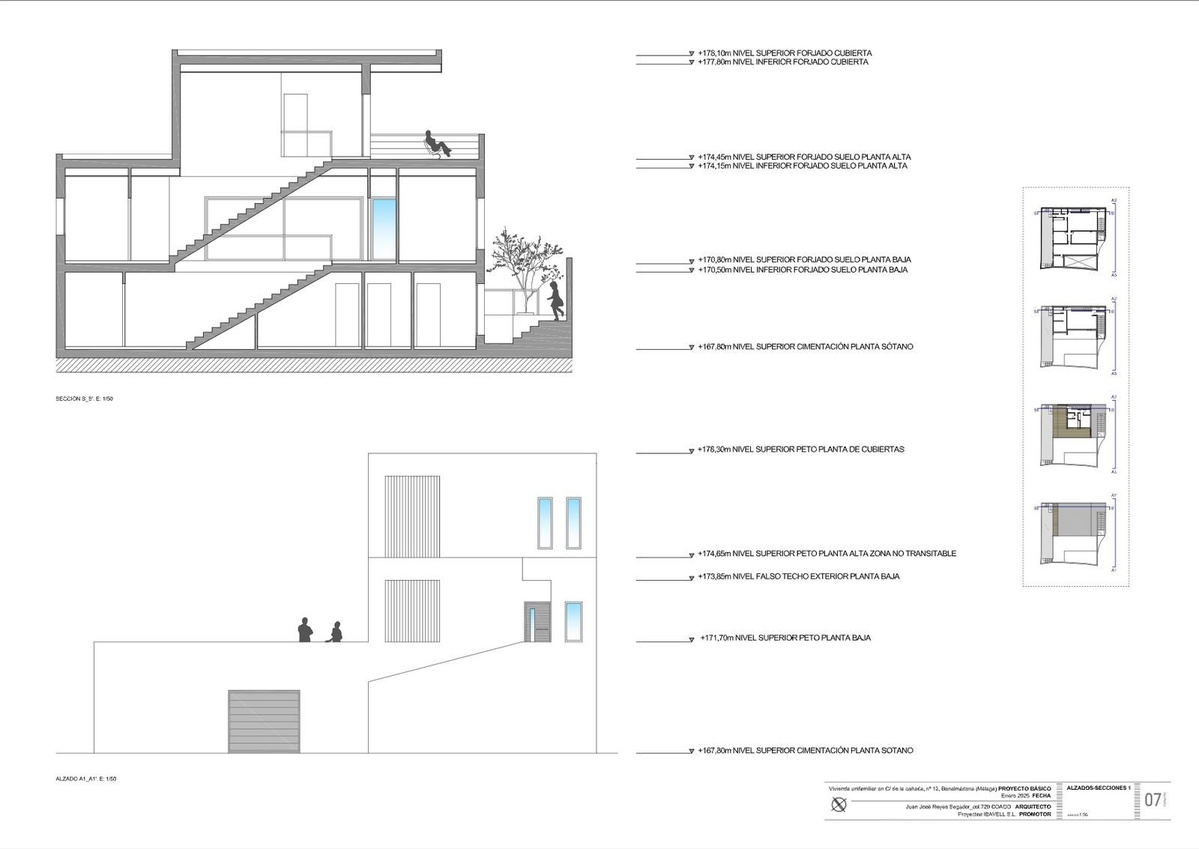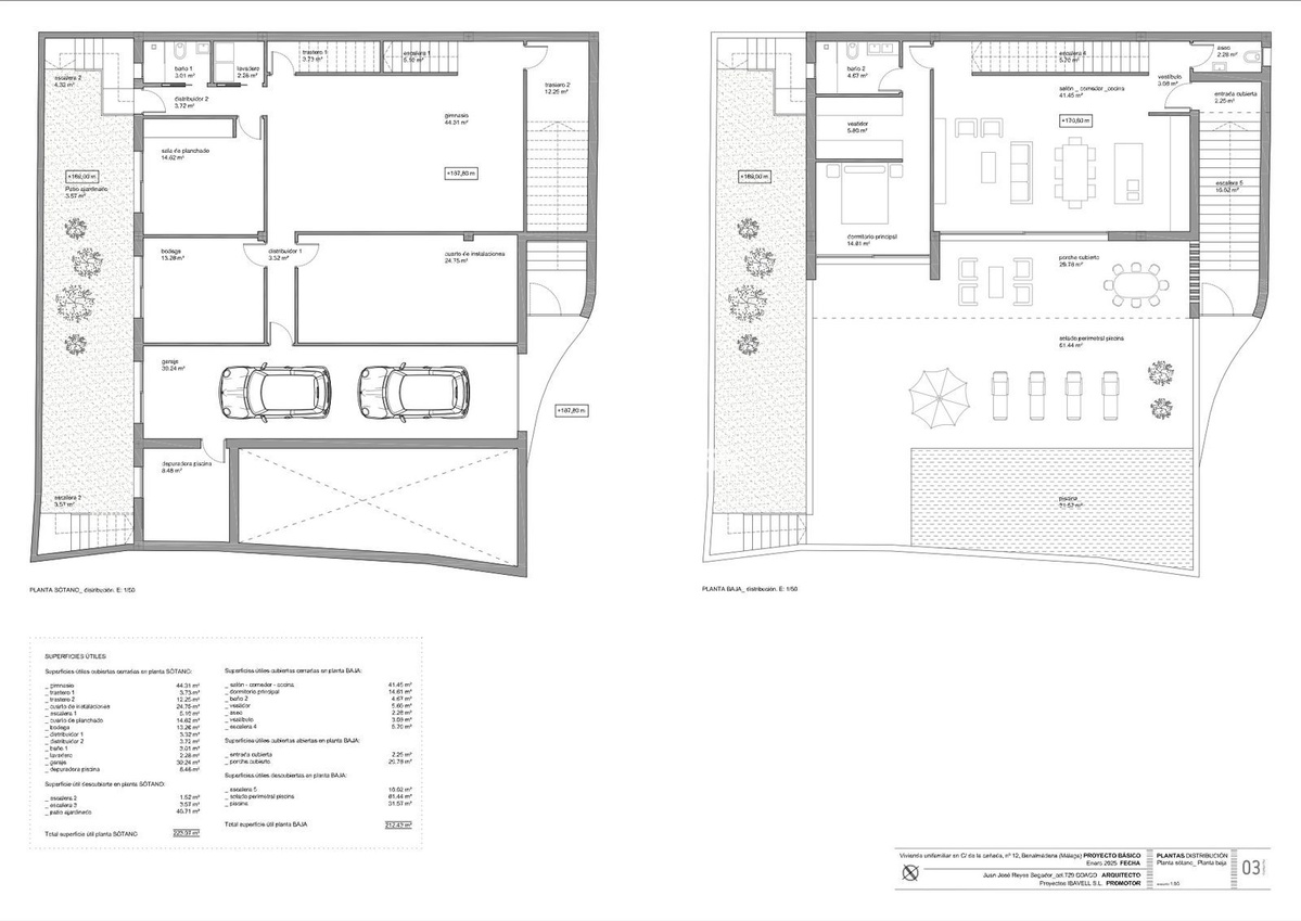 Parcela edificable con proyecto en Rancho Domingo, Benalmádena Pueblo. Ubicación muy atractiva en una parcela de esquina al final de una calle sin salida cerca del pueblo con todo tipo de servicios. El proyecto que está listo para la licencia de construcción consiste en una villa independiente con piscina privada y garaje. Está desarrollado para tener sótano, planta baja y primer piso, con garaje para dos vehículos y piscina. Se ha orientado de manera que las vistas principales se dirijan a los puntos donde no hay edificaciones, aumentando así la sensación de privacidad. Planta sótano con gimnasio, trasteros, cuarto de instalaciones, cuarto de plancha, bodega, baño 1, lavadero, garaje y patio. Superficie útil total de sótano 223,97 m2. Planta baja con salón, comedor, cocina, dormitorio principal, baño 2, vestidor, aseo, pasillo, entrada cubierta, porche cubierto y piscina. Superficie útil total planta baja 212,43 m2. Superficie construida cerrada en planta baja 89,60 m2. Planta primera con dormitorio 1, dormitorio 2, recibidor, baño 3, baño 4, terraza cubierta y terraza descubierta. Superficie útil total planta primera 83,10 m2. Superficie construida cerrada planta primera 46,91 m2 Superficie útil total proyectada 519,50 m2. Superficie construida total computable a nivel urbanístico 136,51 m2. La edificación proyectada se ubica en un entorno urbano consolidado de la urbanización. Las parcelas de la zona están construidas o en proceso de construcción.