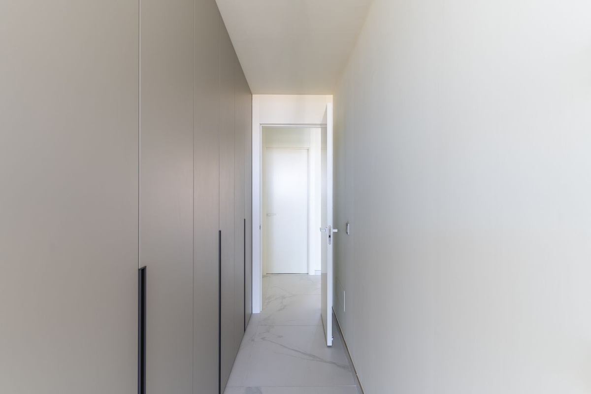 Inside, the property is equipped with a fully fitted kitchen, double glazing, and an advanced alarm system, ensuring both functionality and security. The apartment is offered unfurnished, allowing new owners to personalise the space to their taste. Additional amenities include a communal garage with parking spaces, as well as access to a co-working space and concierge service, catering to modern lifestyles.