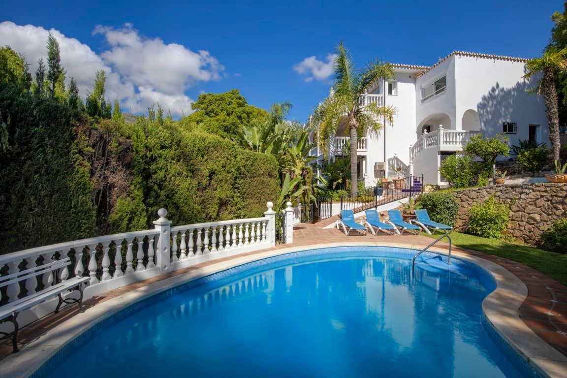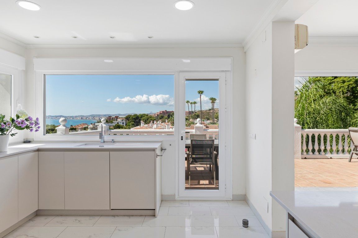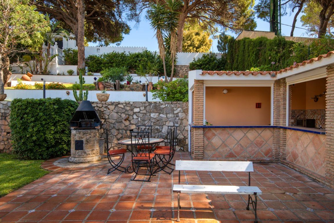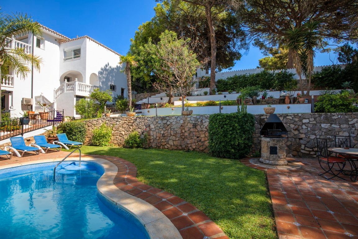 A solo cinco minutos caminando del mar y con unas impresionantes vistas abiertas al Mediterráneo, esta villa en Torremuelle, Benalmádena, es mucho más que una propiedad: es una invitación a vivir rodeado de luz, tranquilidad y naturaleza. Ubicada en una generosa parcela de 1.328 m² y con una superficie construida de 413 m² distribuidos en tres plantas, esta villa ofrece una base sólida con gran potencial para una reforma integral que eleve aún más su valor y singularidad. La propiedad, aunque está en buenas condiciones para entrar a vivir, representa una excelente oportunidad para quienes sueñan con diseñar una residencia a medida en un enclave privilegiado junto al mar. Dispone de seis dormitorios, cuatro baños, un salón amplio y luminoso con chimenea de leña y grandes ventanales que abren las vistas hacia el mar, así como una cocina renovada, completamente equipada, con salida directa a una terraza donde el Mediterráneo es protagonista absoluto. Además, cuenta con espacios complementarios como zona de gimnasio, bodega y varias terrazas soleadas ideales para adaptar según las necesidades de cada familia o proyecto.El exterior es un auténtico refugio mediterráneo: un jardín lleno de vegetación consolidada y fuentes de agua, que rodea una gran piscina privada con zona de duchas, aseo exterior, y un área de BBQ con cocina exterior completamente equipada, ideal para compartir momentos inolvidables con familia y amigos. La propiedad incluye garaje cubierto y espacio adicional de aparcamiento dentro del recinto.La ubicación es sencillamente inmejorable. Se encuentra en una zona residencial tranquila pero excelentemente conectada: a pocos minutos de varias paradas de autobús y de la estación de tren de Torremuelle que conecta con Málaga y Fuengirola. A solo tres minutos en coche de restaurantes, cafeterías, clubs de playa, y supermercados como Lidl y Mercadona. Para los amantes del deporte, el Torremuelle Racket Center, con pistas de tenis y pádel, se encuentra a tan sólo seis minutos, y el prestigioso campo de golf Torrequebrada a diez. El Aeropuerto de Málaga está a tan sólo 20 minutos en coche.Una propiedad con alma, vistas de ensueño y un enorme potencial para personalizar, sin renunciar a la comodidad de poder entrar a vivir desde el primer momento. Ideal como residencia principal, segunda vivienda o inversión en una de las zonas más atractivas de la Costa del Sol, Contáctanos para visita privada.Tiene a su disposición el documento informativo abreviado. Gastos: Impuestos (ITP o IVA+AJD) + Gastos notariales y registrales.ALA..
