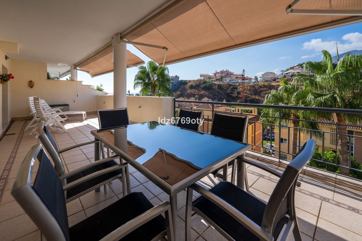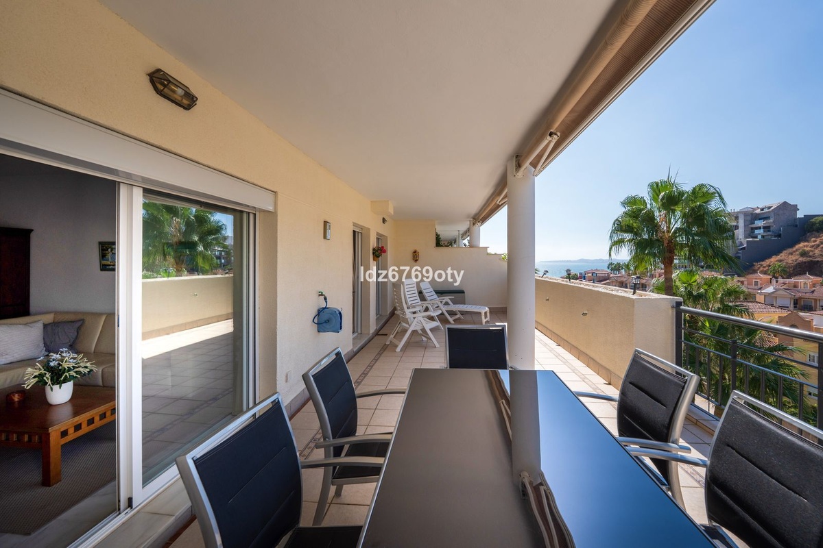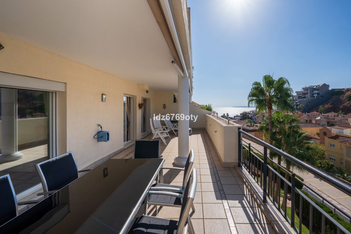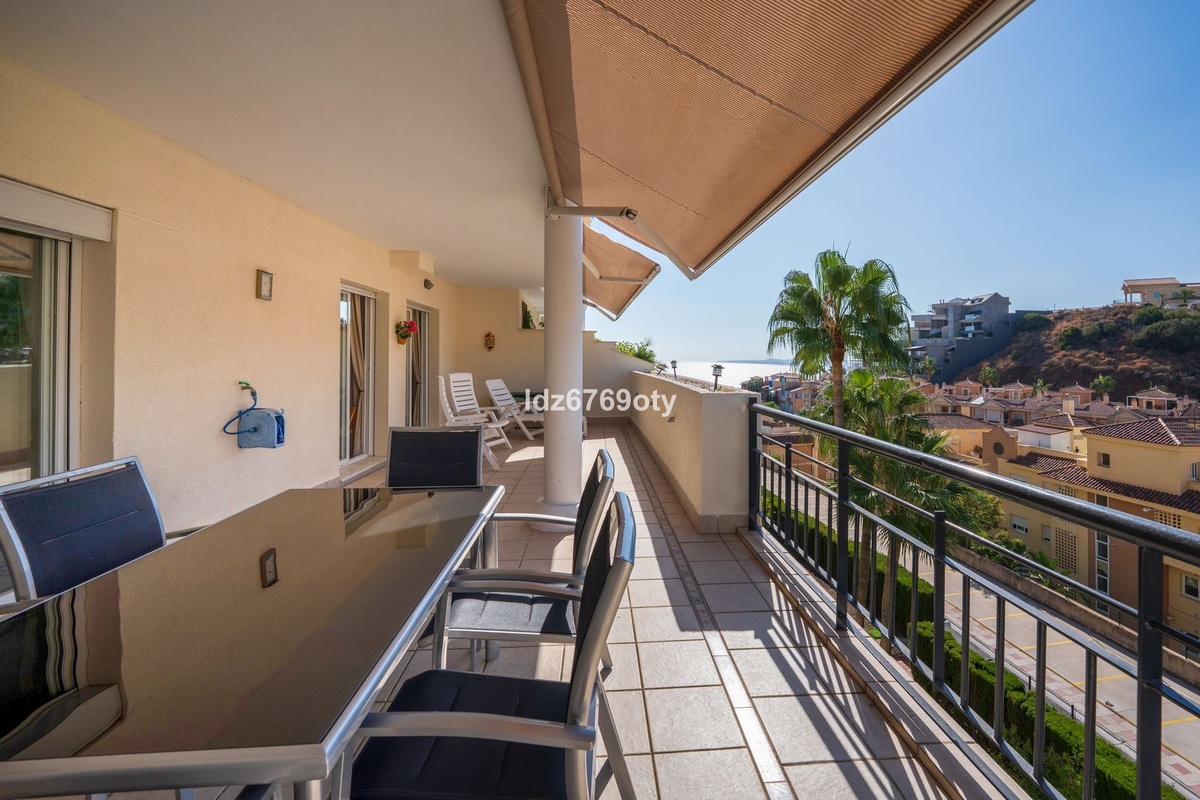 A solo 20 minutos del aeropuerto de Málaga, a poca distancia de la playa de Benalmádena Costa, restaurantes y un supermercado, y cerca del famoso campo de golf de Torrequebrada, se encuentra la lujosa urbanización 'VistaQuebrada'. Este bonito complejo, construido en forma de terraza, está situado en una ladera y ofrece unas vistas magníficas al mar, las montañas y los alrededores. Junto al complejo hay un pequeño centro comercial, un Mercadona (supermercado) y un colegio internacional. El paseo marítimo, con sus numerosos chiringuitos, y la carretera costera N340 se encuentran frente al complejo, por lo que son muy accesibles. A poca distancia en coche de 'VistaQuebrada' se encuentran los famosos pueblos de Benalmádena Pueblo, Arroyo de la Miel, La Carihuela, Torremolinos, Fuengirola o el famoso puerto deportivo de Benalmádena, 'Puerto Marina', con sus numerosas tiendas, restaurantes y una animada vida nocturna. El apartamento de 3 dormitorios, en excelente estado, con una superficie habitable de 120 m2, tiene orientación suroeste y está situado en la primera planta. A través de la entrada principal hay un salvaescaleras que conduce al ascensor normal, que le llevará tanto a las plantas como al garaje interior. Por lo tanto, el apartamento es fácilmente accesible en silla de ruedas. El apartamento, decorado en tonos neutros, está completamente amueblado, equipado con aire acondicionado/calefacción y dispone de wifi de alta velocidad. La cocina, abierta y espaciosa, cuenta con varios electrodomésticos empotrados, como lavavajillas, horno, microondas, frigorífico/congelador y placa vitrocerámica. Desde la cocina se accede a un patio privado cubierto de 35 m² con múltiples posibilidades de uso. Desde el comedor/salón, con una chimenea, se accede directamente a la amplia terraza de 40 m² con vistas al mar y espacio para varias tumbonas y un comedor para 6 personas. El amplio dormitorio principal cuenta con armarios empotrados y acceso directo a la terraza. El cuarto de baño en suite cuenta con lavabo doble, bañera/ducha y aseo. El segundo dormitorio tiene armarios empotrados y también acceso a la terraza y, junto con el tercer dormitorio, comparte un segundo cuarto de baño independiente con bañera/ducha y aseo. El apartamento también dispone de un espacio con lavadora y secadora. En el aparcamiento subterráneo hay un trastero personal y 2 plazas de aparcamiento privadas. Si busca un apartamento único y céntrico, adaptado para sillas de ruedas y espacioso, cerca de la playa, con vistas al mar y mucho sol, ¡concierte rápidamente una cita para una visita sin compromiso!