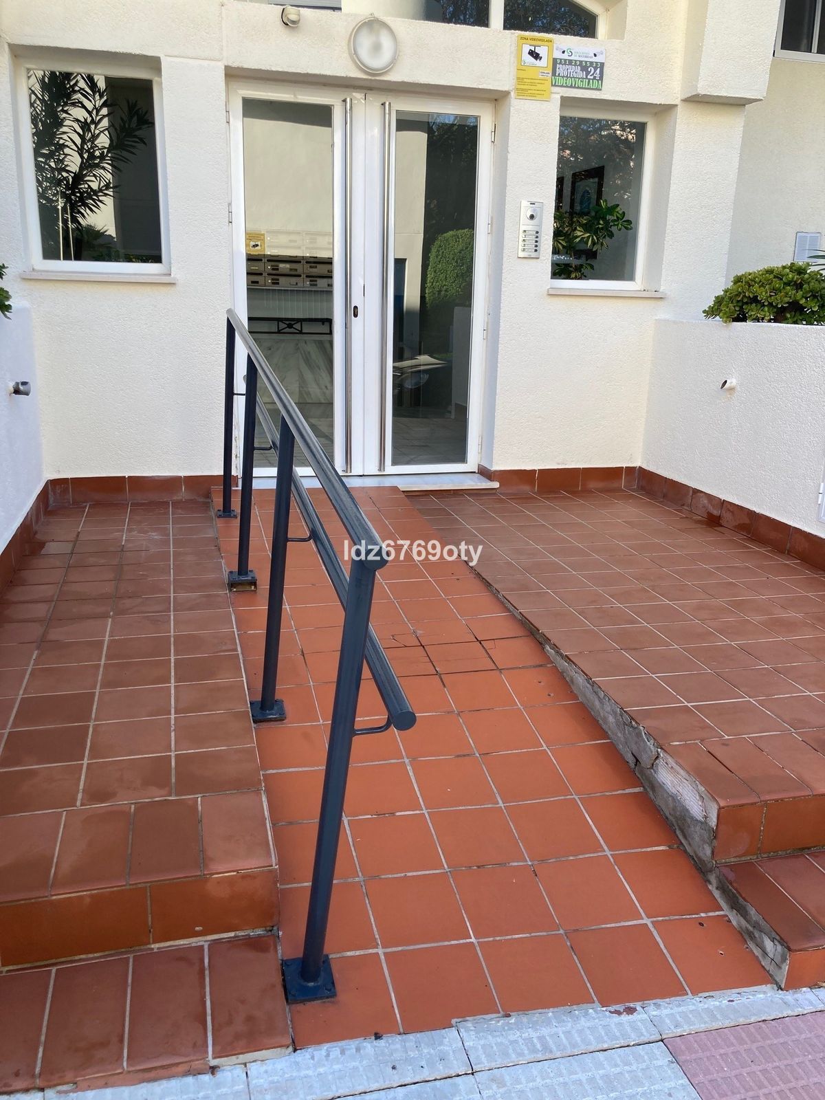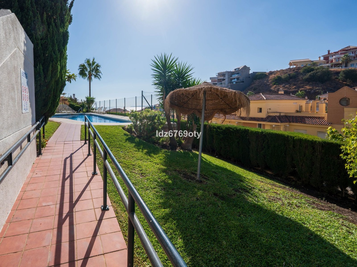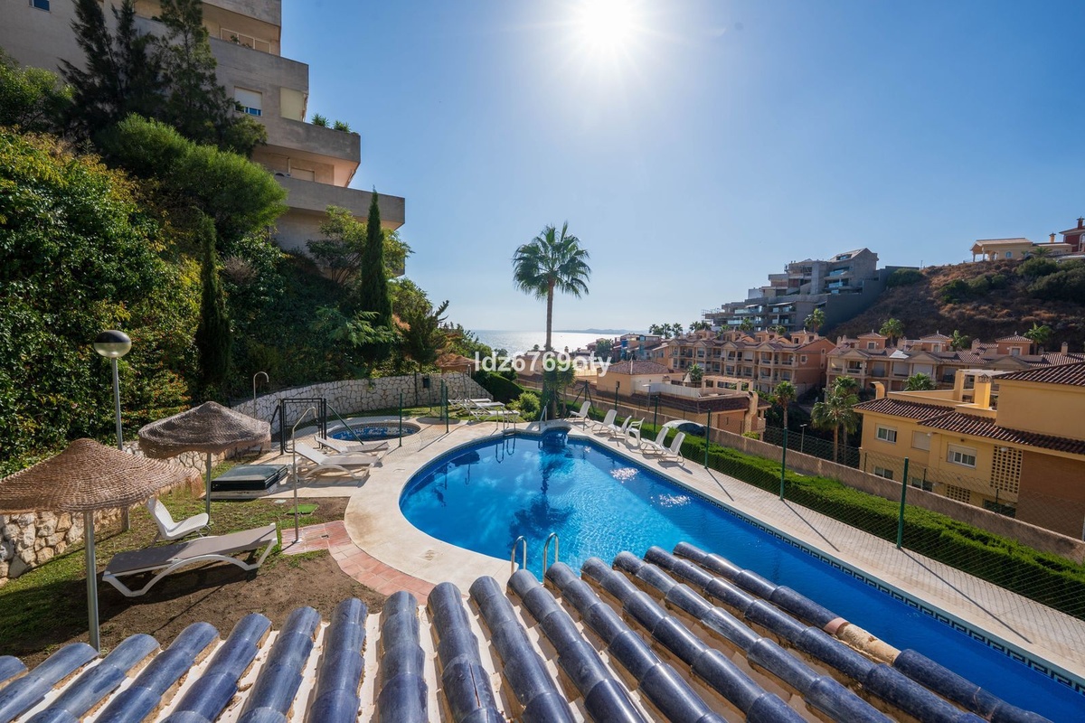 A solo 20 minutos del aeropuerto de Málaga, a poca distancia de la playa de Benalmádena Costa, restaurantes y un supermercado, y cerca del famoso campo de golf de Torrequebrada, se encuentra la lujosa urbanización 'VistaQuebrada'. Este bonito complejo, construido en forma de terraza, está situado en una ladera y ofrece unas vistas magníficas al mar, las montañas y los alrededores. Junto al complejo hay un pequeño centro comercial, un Mercadona (supermercado) y un colegio internacional. El paseo marítimo, con sus numerosos chiringuitos, y la carretera costera N340 se encuentran frente al complejo, por lo que son muy accesibles. A poca distancia en coche de 'VistaQuebrada' se encuentran los famosos pueblos de Benalmádena Pueblo, Arroyo de la Miel, La Carihuela, Torremolinos, Fuengirola o el famoso puerto deportivo de Benalmádena, 'Puerto Marina', con sus numerosas tiendas, restaurantes y una animada vida nocturna. El apartamento de 3 dormitorios, en excelente estado, con una superficie habitable de 120 m2, tiene orientación suroeste y está situado en la primera planta. A través de la entrada principal hay un salvaescaleras que conduce al ascensor normal, que le llevará tanto a las plantas como al garaje interior. Por lo tanto, el apartamento es fácilmente accesible en silla de ruedas. El apartamento, decorado en tonos neutros, está completamente amueblado, equipado con aire acondicionado/calefacción y dispone de wifi de alta velocidad. La cocina, abierta y espaciosa, cuenta con varios electrodomésticos empotrados, como lavavajillas, horno, microondas, frigorífico/congelador y placa vitrocerámica. Desde la cocina se accede a un patio privado cubierto de 35 m² con múltiples posibilidades de uso. Desde el comedor/salón, con una chimenea, se accede directamente a la amplia terraza de 40 m² con vistas al mar y espacio para varias tumbonas y un comedor para 6 personas. El amplio dormitorio principal cuenta con armarios empotrados y acceso directo a la terraza. El cuarto de baño en suite cuenta con lavabo doble, bañera/ducha y aseo. El segundo dormitorio tiene armarios empotrados y también acceso a la terraza y, junto con el tercer dormitorio, comparte un segundo cuarto de baño independiente con bañera/ducha y aseo. El apartamento también dispone de un espacio con lavadora y secadora. En el aparcamiento subterráneo hay un trastero personal y 2 plazas de aparcamiento privadas. Si busca un apartamento único y céntrico, adaptado para sillas de ruedas y espacioso, cerca de la playa, con vistas al mar y mucho sol, ¡concierte rápidamente una cita para una visita sin compromiso!