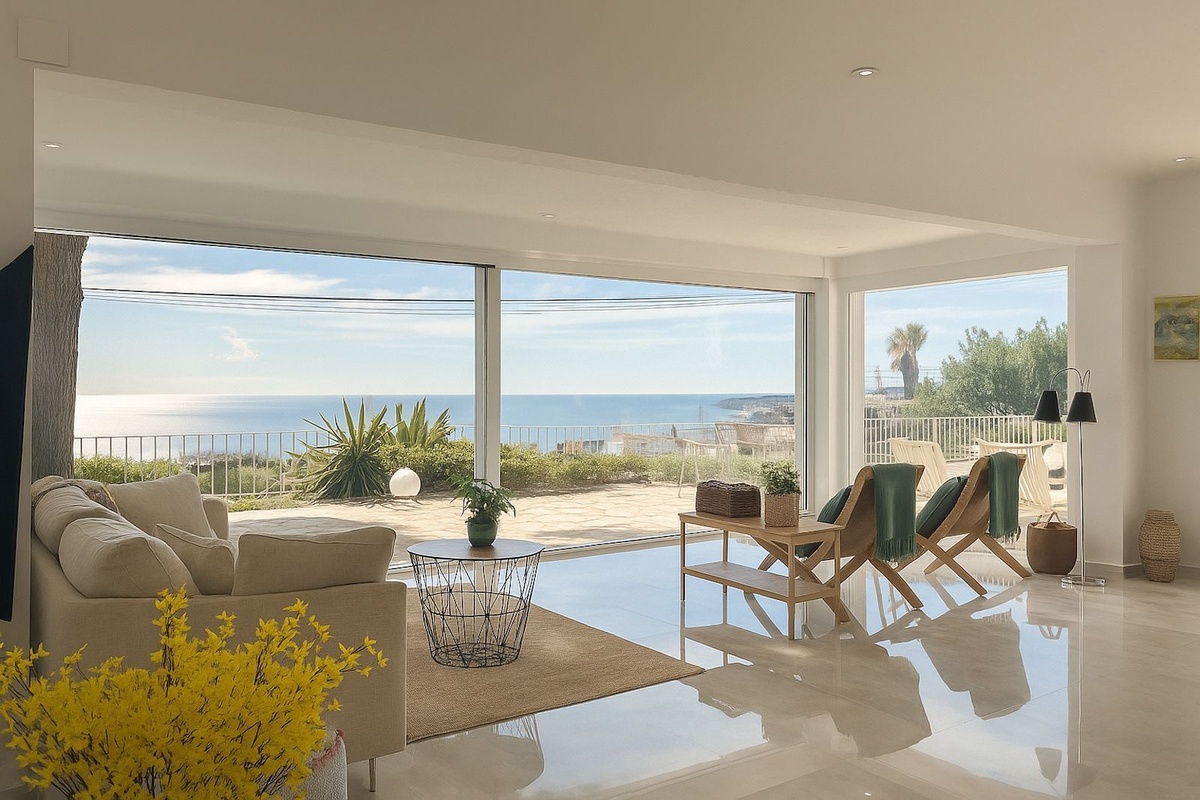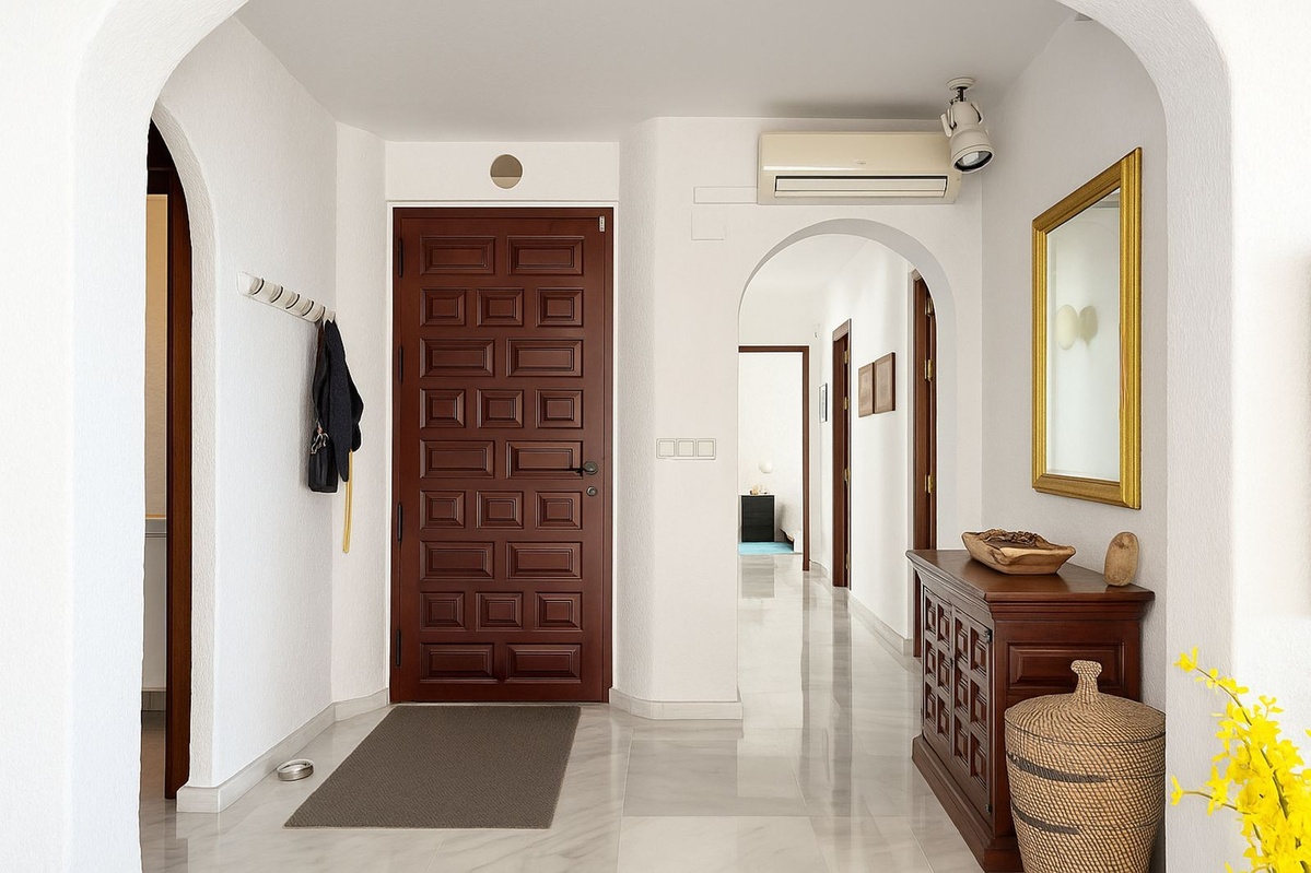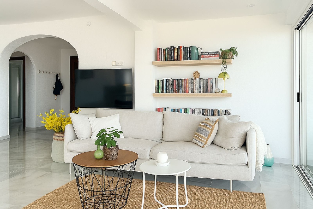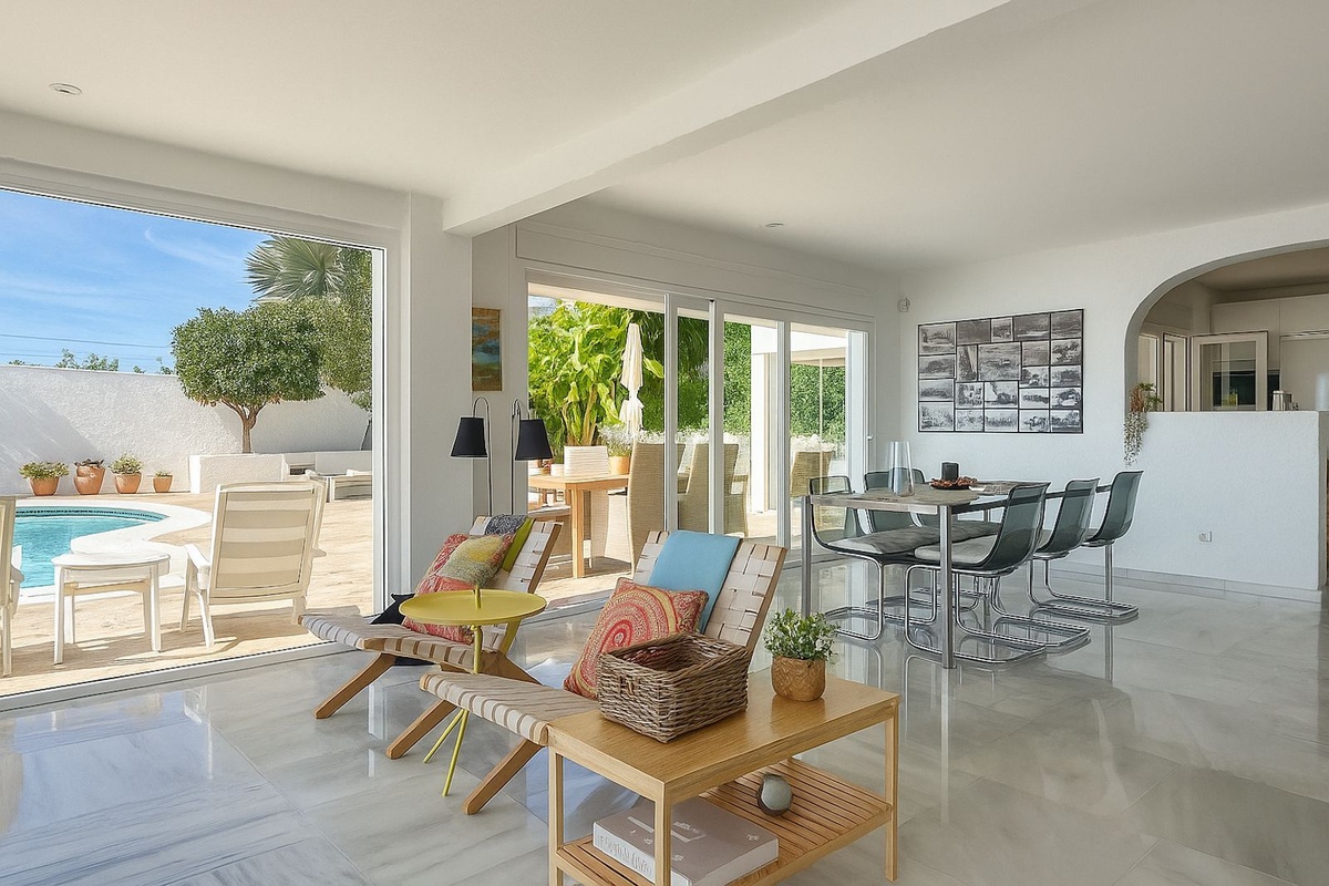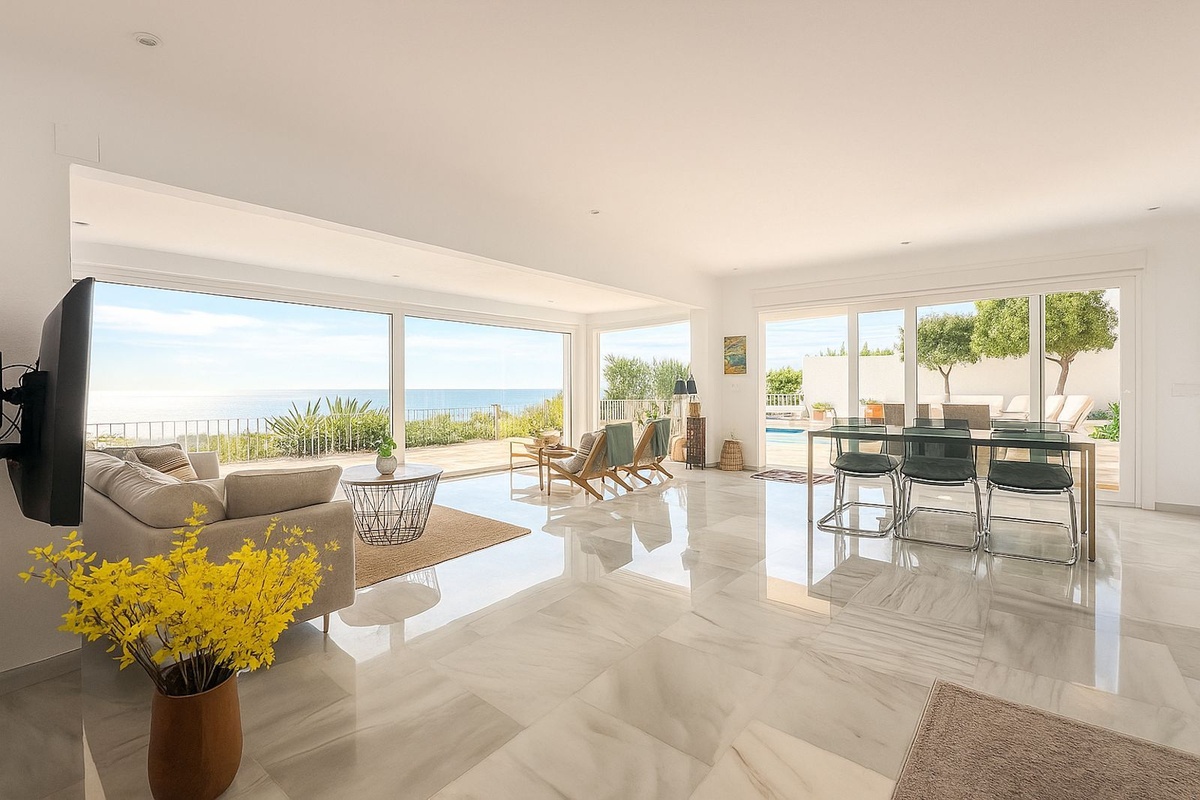 Welcome to this beautiful Mediterranean villa, located in the sought-after area of La Capellanía - known for its quiet surroundings, stunning sea views, and easy access to everything you need. This lovely home offers three bedrooms and two bathrooms, spread across 119 m² of living space on a generous 600 m² plot. The villa is designed for comfortable year-round living, with underfloor heating, air conditioning, and plenty of natural light flowing through every room. The open-plan living area connects seamlessly to a fully fitted kitchen and a covered terrace, creating the ideal setting for both relaxing and entertaining. Step outside and enjoy the private swimming pool, large terrace, and wonderful views over Fuengirola and the Mediterranean Sea. The property comes fully furnished and ready to move into, featuring a garage and all the modern comforts you’d expect. Within a short drive, you’ll find local restaurants, shops, and beaches - making this home perfect as both a permanent residence or a holiday retreat. A true gem on the Costa del Sol that combines peace, privacy, and proximity to the coast.