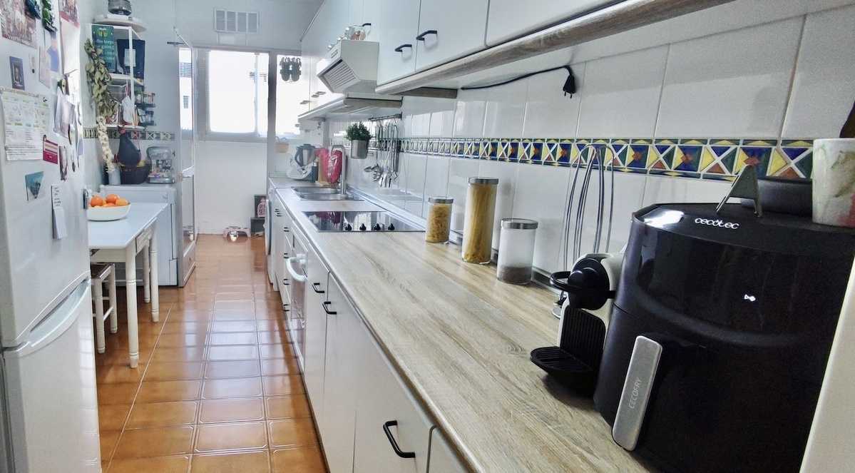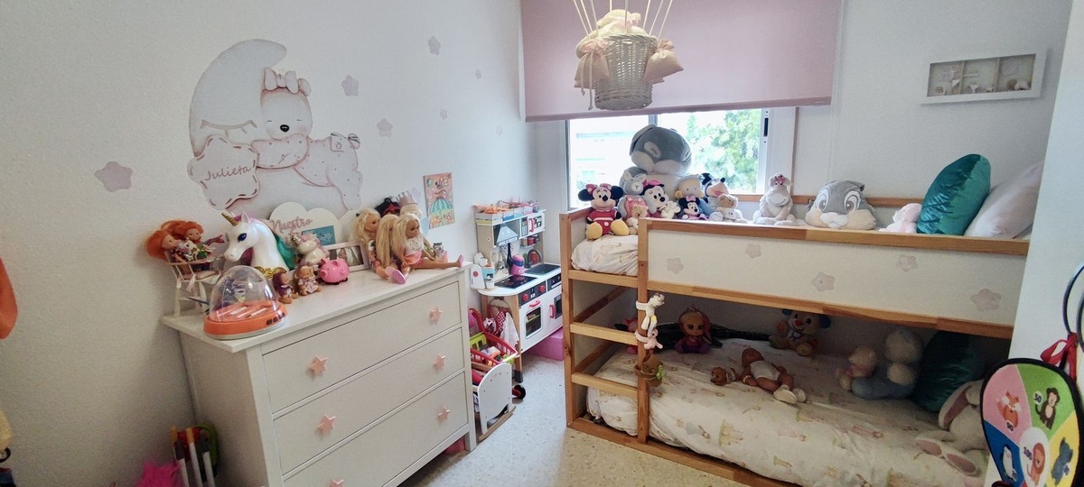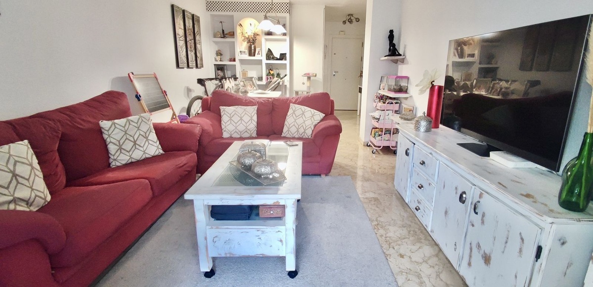 Magnificent flat in the heart of Arroyo de la Miel, Benalmádena, located close to all kinds of amenities and excellent transport links. The property is located on the second floor of a building with a lift and has a floor area of 107 m², distributed over a master bedroom, two secondary bedrooms, a full bathroom (with the possibility of adding a second bathroom), a fully fitted and equipped separate kitchen with utility room, and a spacious living-dining room of approximately 25 m² with direct access to a pleasant 8 m² terrace, facing east and with unobstructed views of the communal areas. Its features include fitted wardrobes, reinforced front door, aluminium double-glazed windows, air conditioning in the living room and master bedroom, and marble floors. A parking space is included in the price. The residential complex is a private enclosure with a communal swimming pool and gardens, ideal for enjoying with the family. Excellent location, just a few metres from the train station, bus and taxi stops, as well as supermarkets, a pharmacy, schools, a health centre and all kinds of shops. An ideal property both as a family home and as an investment, thanks to its high profitability. Year of construction: 1983 Community fees: €80/month Property tax: €650/year